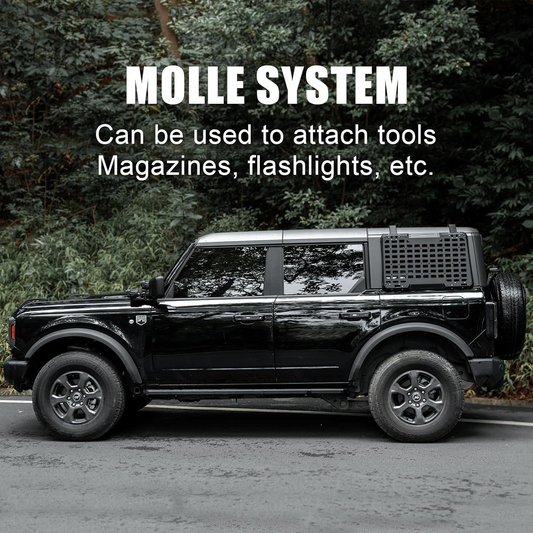 Rear Window Molle Storage Panel Flank Kit, Heavy Duty Protective Decoration Compatible with Ford Bronco 2021 2022 2023 2024 4-Door, Compatible with Passenger side, Aluminum Alloy Off-Road Tool Holder