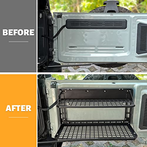 Folding Rear Tailgate Table Aluminum Alloy 2-Tier Camping Cargo Shelf Luggage Holder Carrier Molle Panel (21-23 Ford Bronco 2/4 Doors)