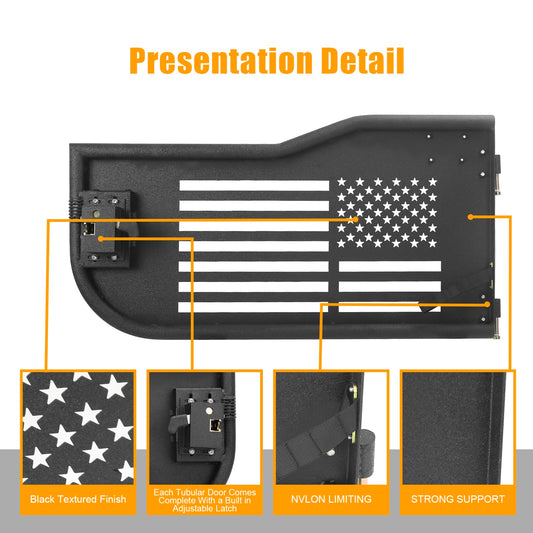 Tube Doors Compatible with 2018-2024 Jeep Wrangler JL JLU 4-Door models Tubular Half Doors with USA Flag Logo