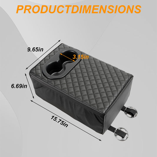 Universal Car Rear Seat Armrest 2 Row Console Box with Cup Holder Backseat Arm Rest Console Box Second Row Rear Central Armrest Box(Black-Double Pockets)