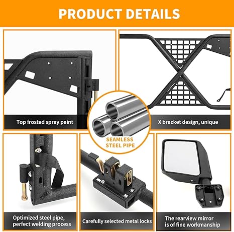 - 【After-Sales Support】 Each set includes 4 x tube doors, 2 x side view mirrors, and all necessary hardware for installation.Any manufacturing de fects and damage during delivery will be backed by our customer service.