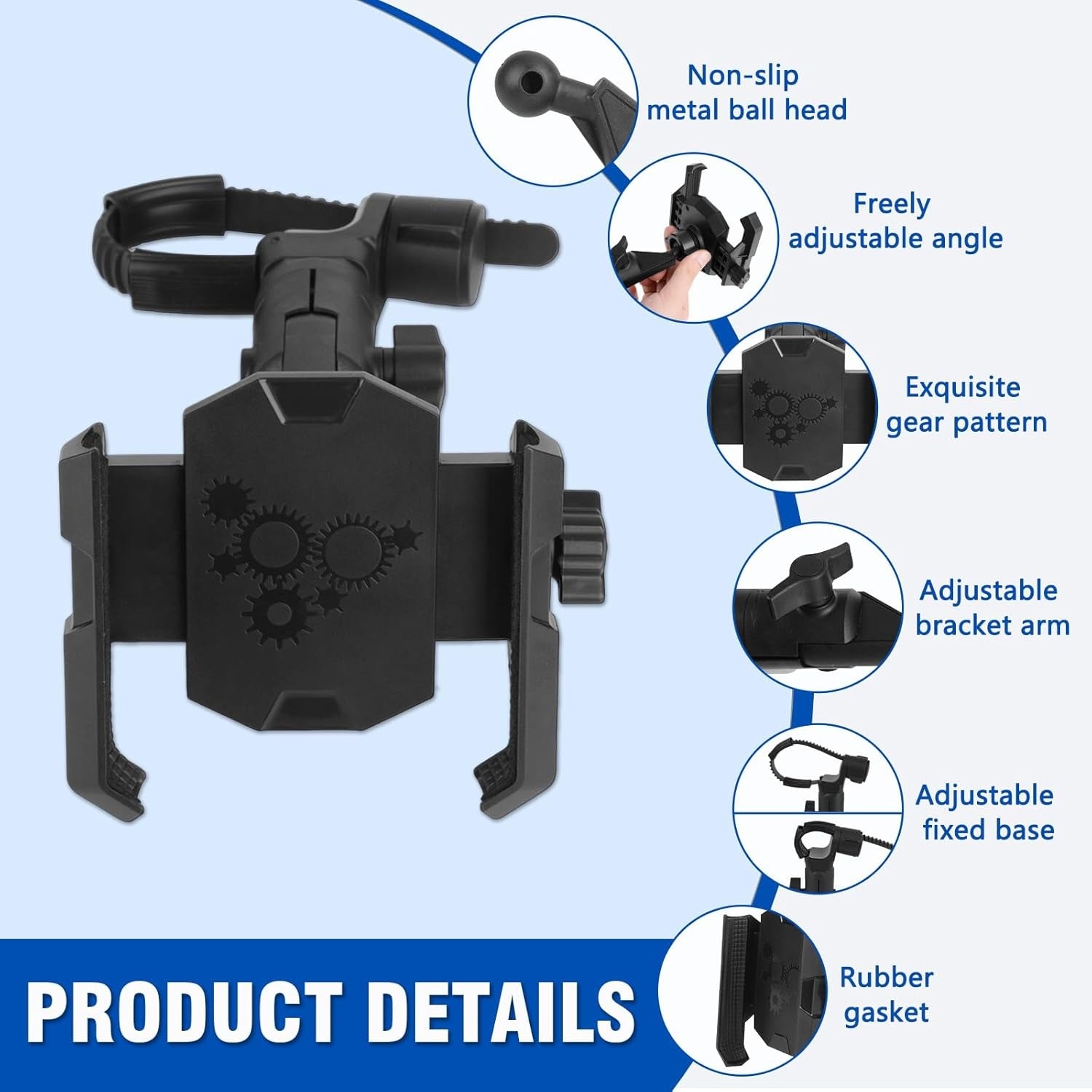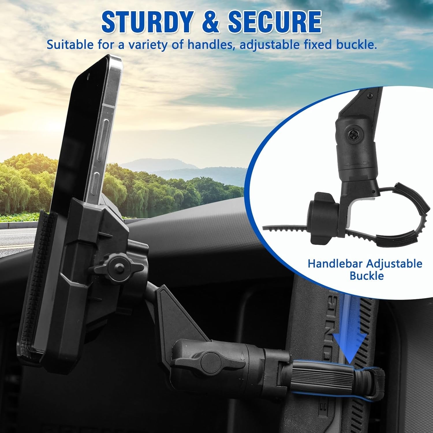 • Safe and stable: This off-road vehicle phone holder is made of high-quality ABS material, which is scratch-resistant and non-slip. Even in the case of high-speed and severe vibration, it can firmly grasp the handlebars and will not fall off.