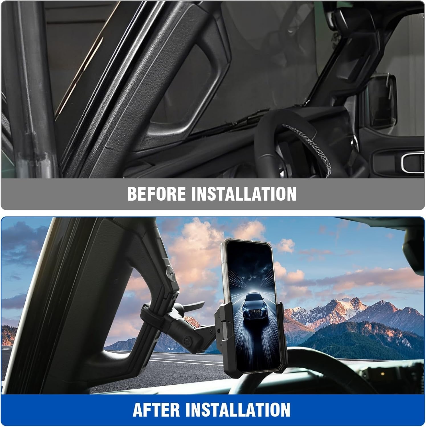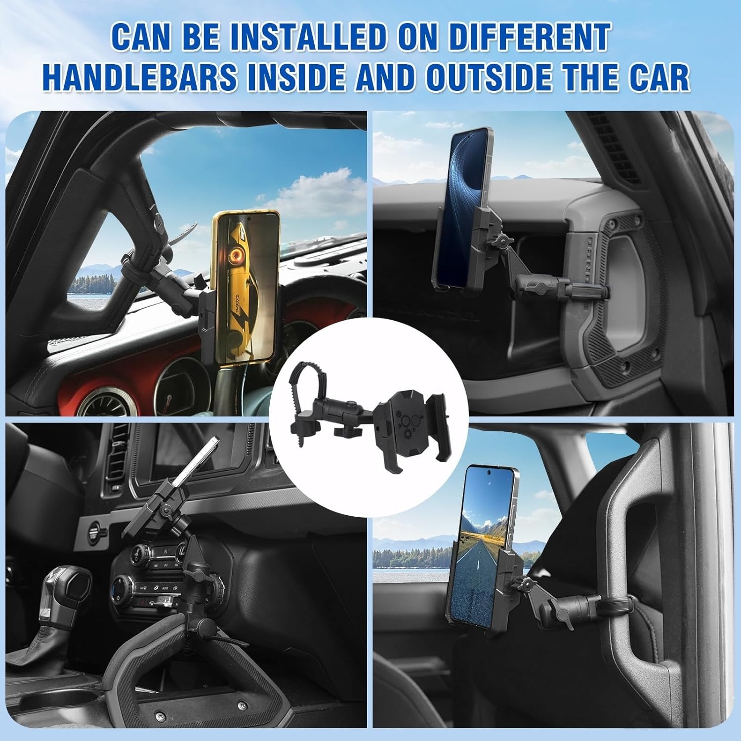 A Pillar Grab Handle Phone Mount Adjustable Direction Mobile Phone Holder Compatible with Jeep/Bronco/F-150/F-250/F-350/Chevrolet Silverado/GMC Sierra/Dodge Ram/Land Cruiser Fit for iPhone 14 15 16