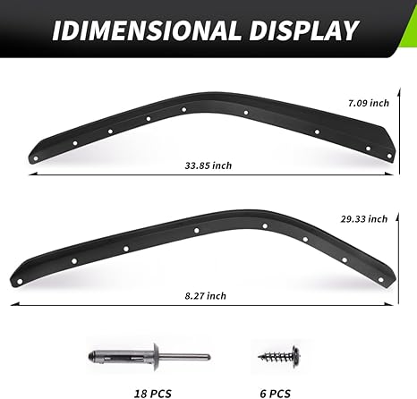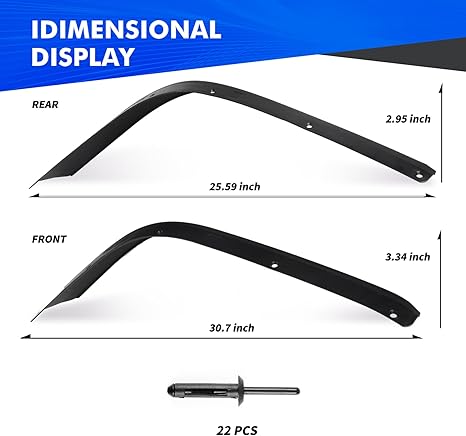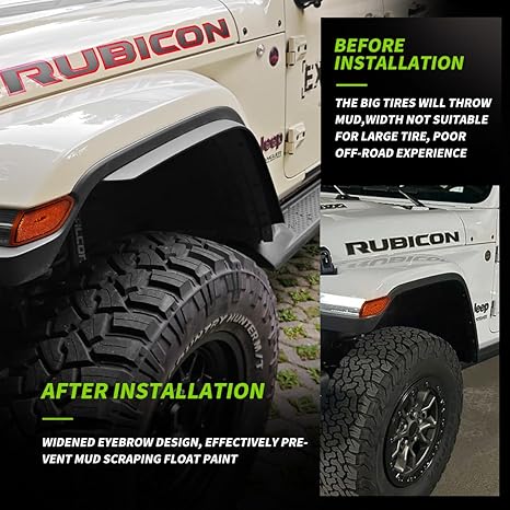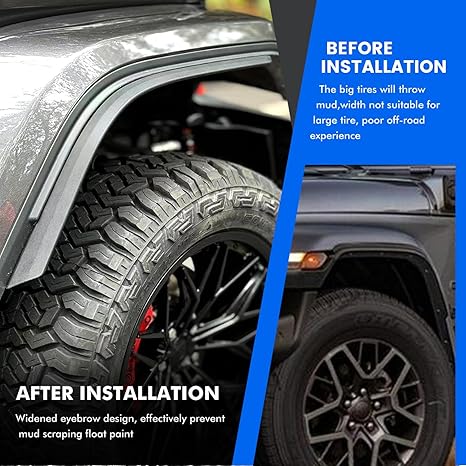 - WIDENED DESIGN - Solves the problem that the fender of the original car is not wide enough after replacing the large-size tire, and at the same time can effectively prevent sand and stone from splashing and scratching the paint surface of the original car.