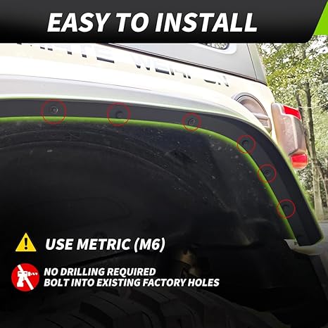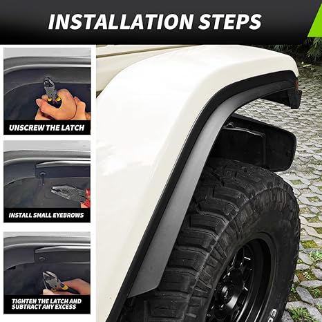 - EASY TO INSTALL - The Jeep fender requires no cutting or drilling and installs over the original fender, and comes with installation instructions and a hardware kit containing all necessary components. For high fenders, not for low fenders.
