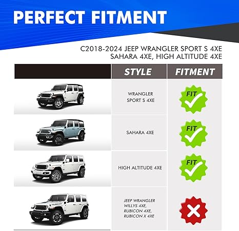 4 PCS Fenders Front & Rear Fenders (07-18 Jeep Wrangler JK& JKU, 21-24 Jeep wrangler Willys 4XE, Sport S Sahara 4XE)