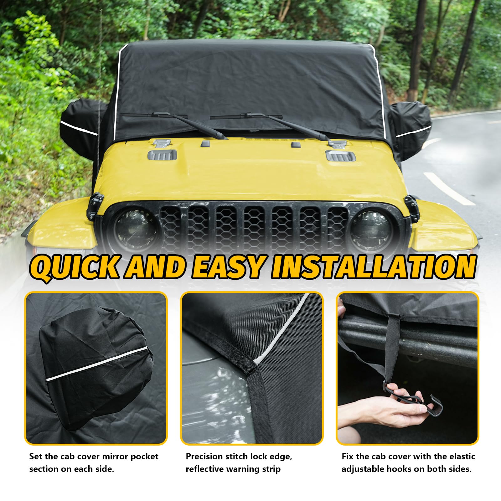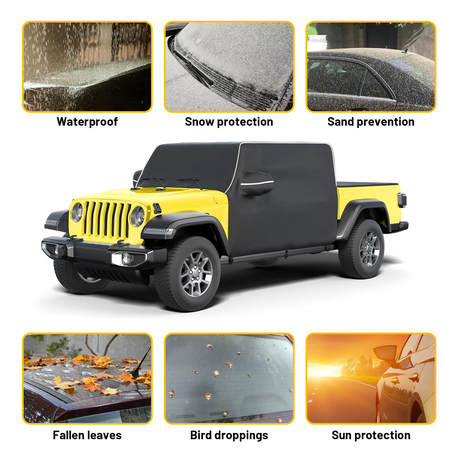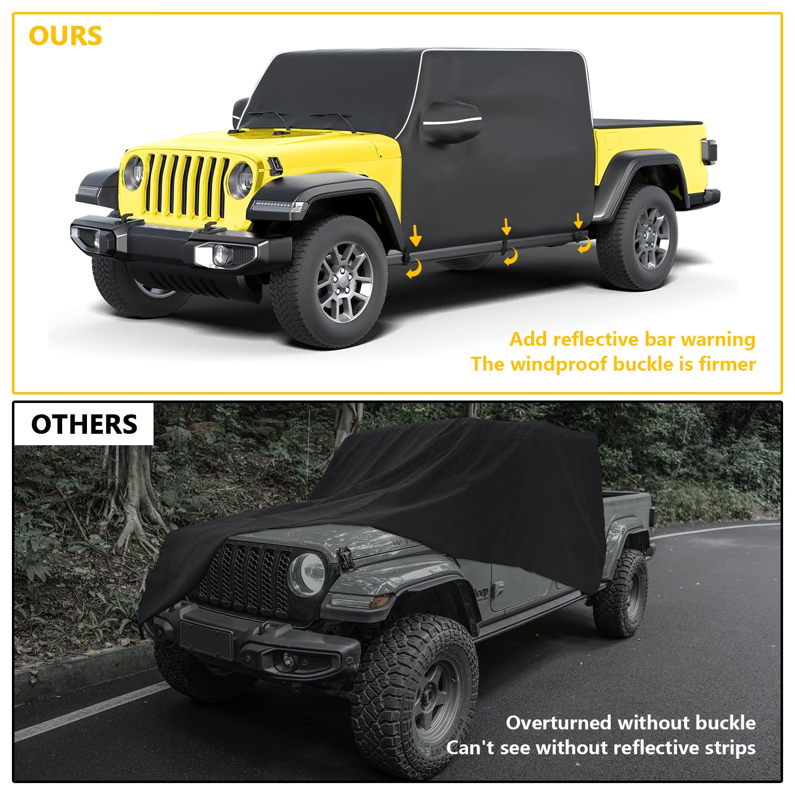 - 【Easy Installation】MAIKER Cab car cover can be easily installed with no tools, simply throw it over your Gladiator put it on the windshield side first, and then move it to the back, which tightly fits your Gladiator JT.