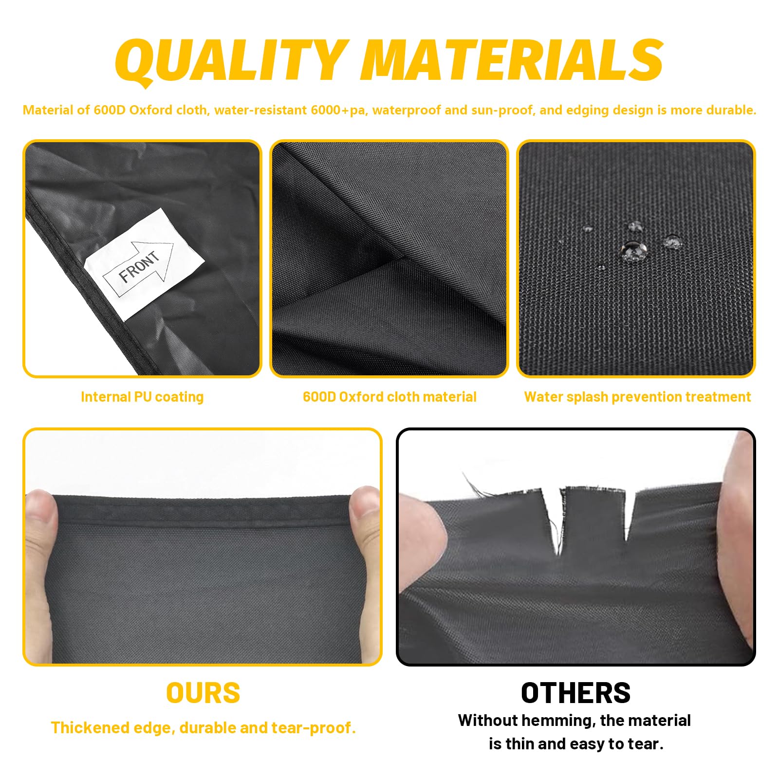 - 【Upgrade Three-layer Protection】Made of Upgrade 600D heavy duty waterproof material, which can withstand water pressure up to 6000pa. Protected from the sun and those sudden rain showers, UV rays, dirt, dust, and grime.