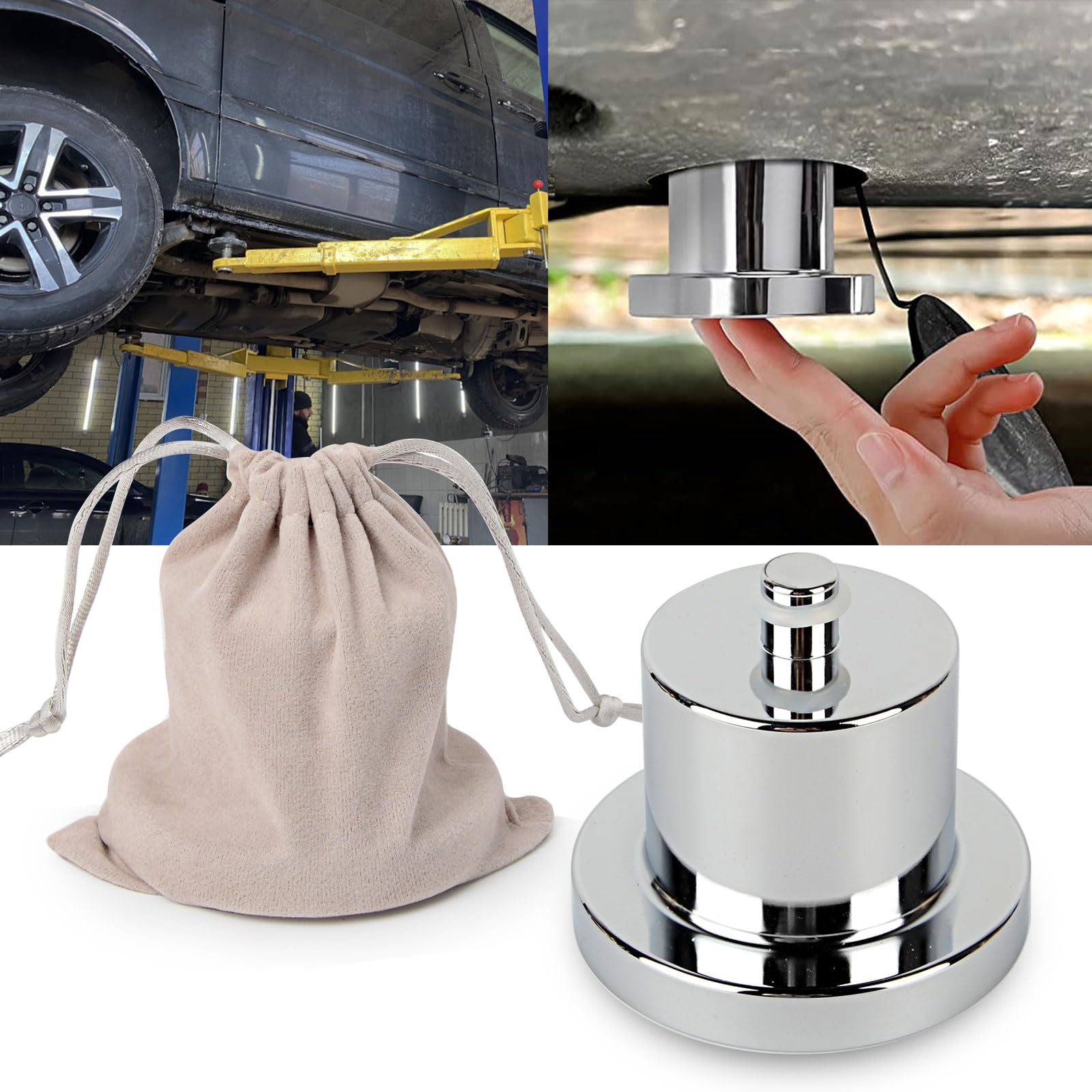 • 【Lift Your Rivian Properly】The bottom of the Rivian is fully covered in aerodynamic plastic panels and at each corner of the vehicle there exists frame access points, each covered with round plastic caps, requiring the usage of a jack pad puck to allow any jack or lift pad to contact the frame.