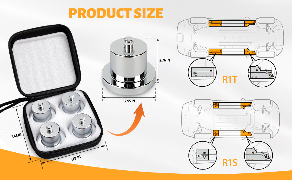 • 【Easy To Use】Simply remove the caps under the chassis and locate the access points, which are specified by Rivian for safe and proper lifting of the vehicle, and insert the jack pads.