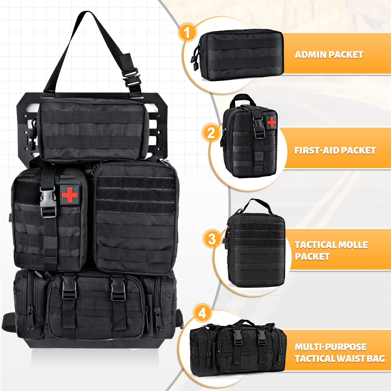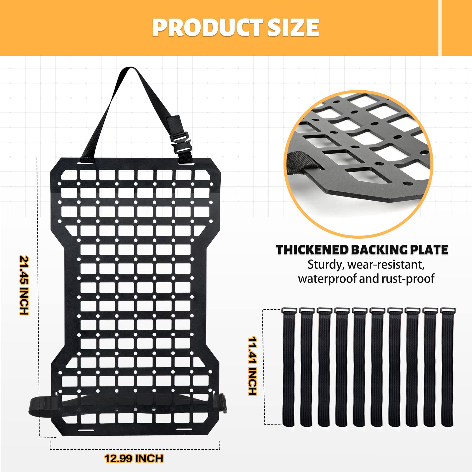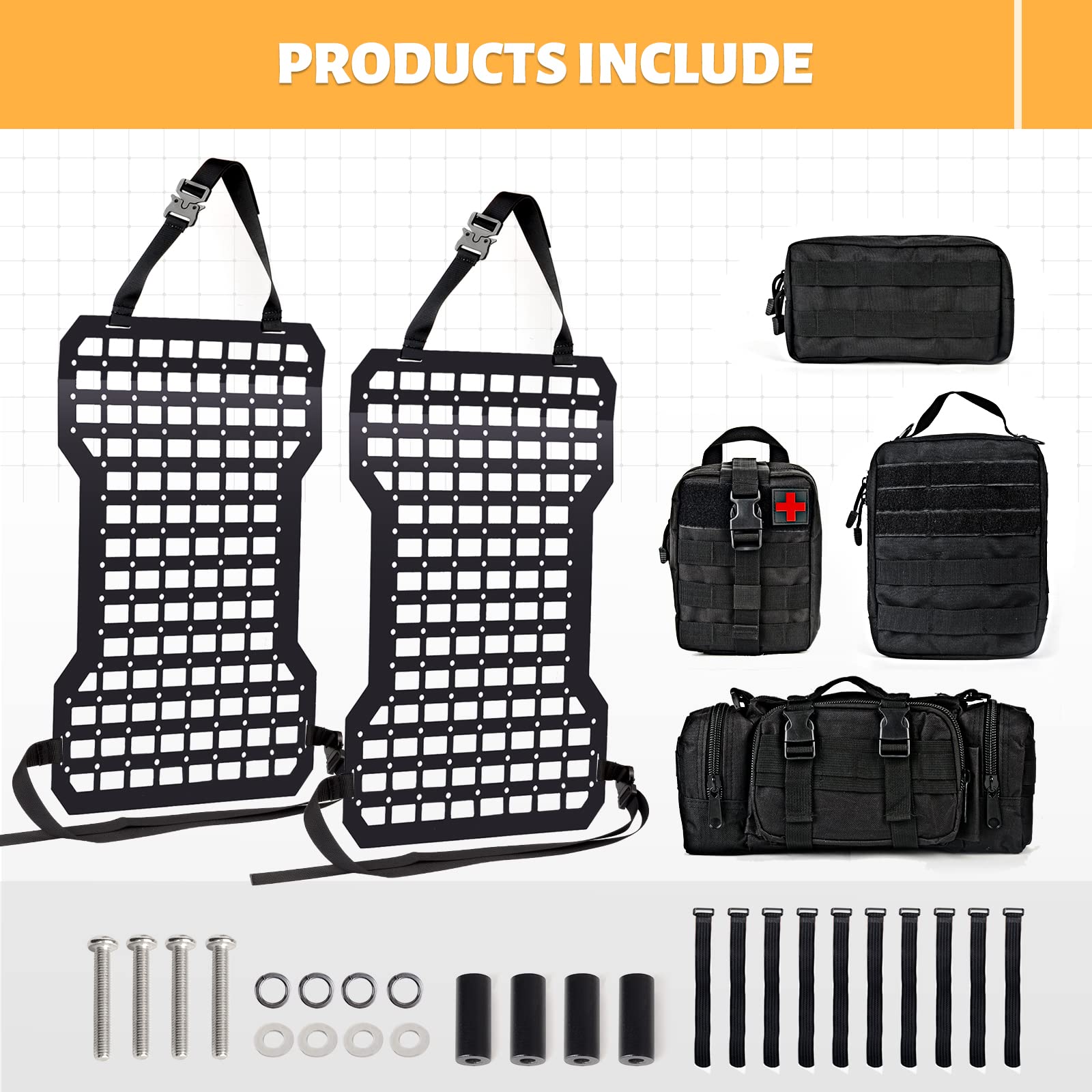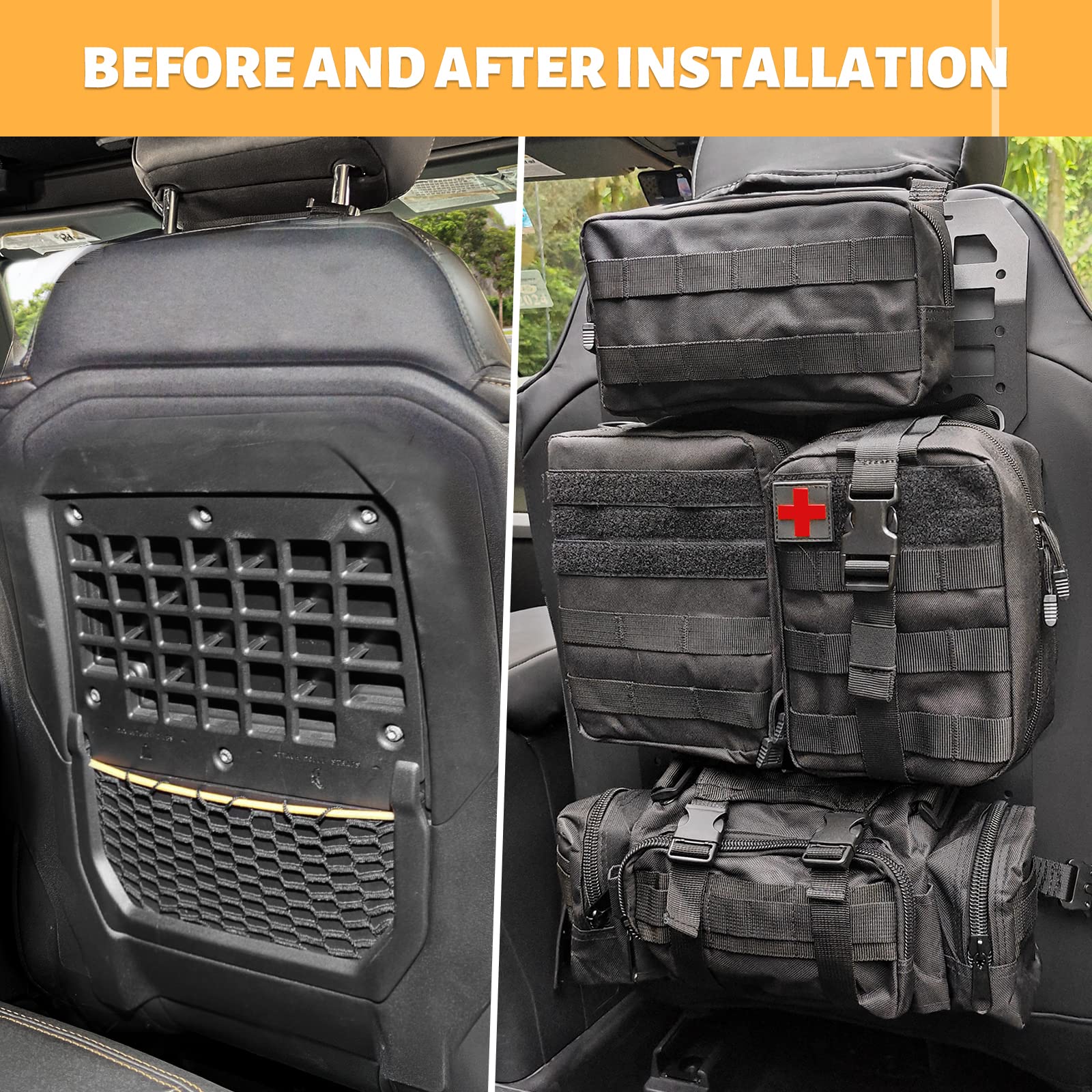 2pcs Tactical Rigid Molle Aluminum Insert Panel Seat Back Organizer Modular Platform with 4 Storage Bags and 10 Fastening Tape (21-23 Ford Bronco Accessories)