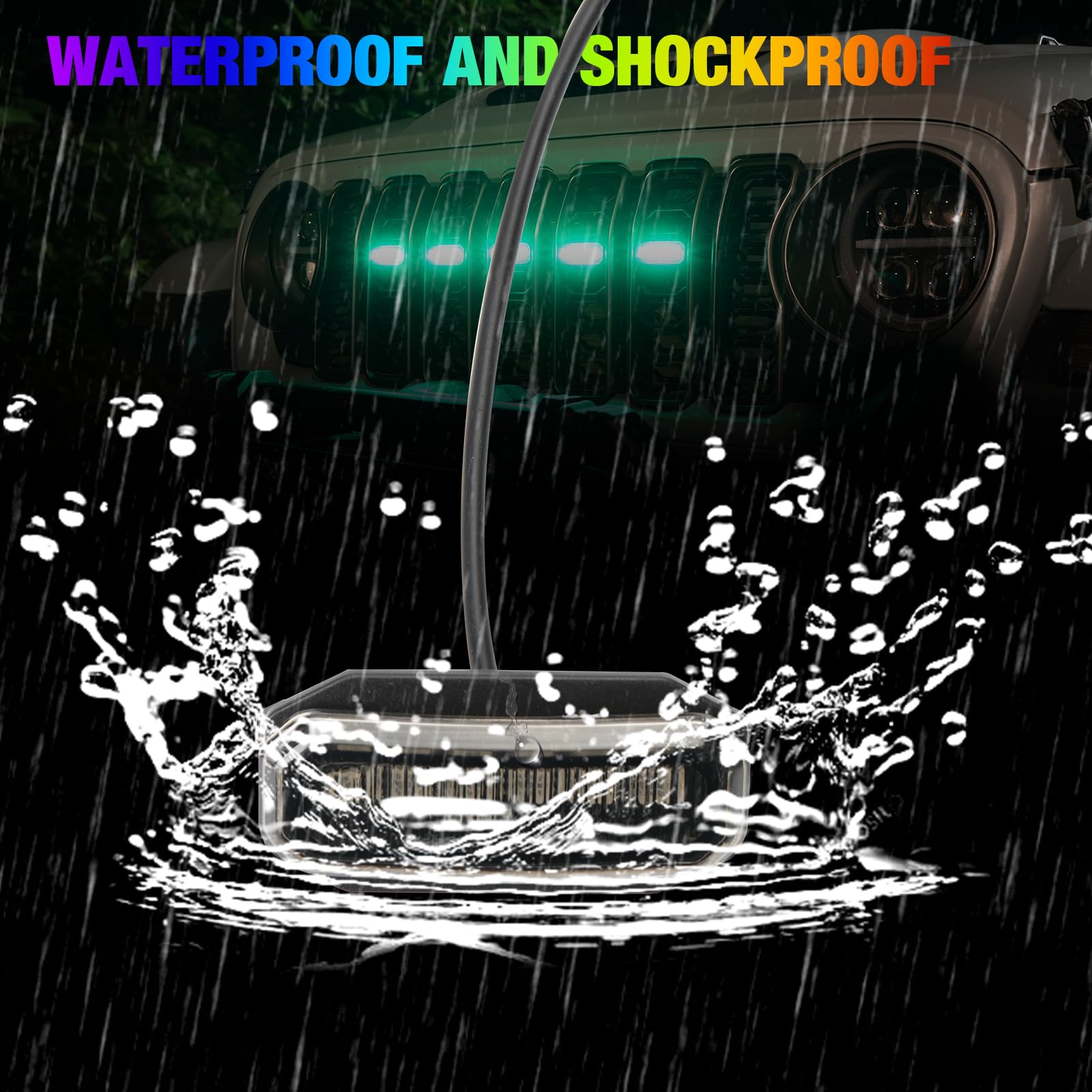 - Smart App Control: Experience ultimate convenience with Bluetooth connectivity that allows you to control your LED grille lights from your smartphone, anytime and anywhere. Featuring 5 wired mini lights with 16 stunning LED colors at your disposal, you can easily mix and match colors to suit your mood or occasion, making these lights a must-have for any car enthusiast.