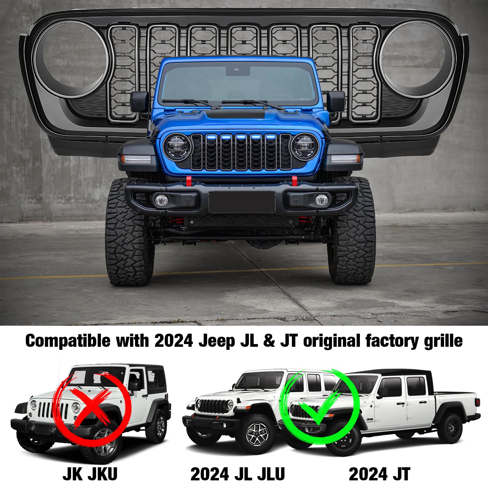 - Fits 2024 Wrangler Original Factory Grille : These grille lights are specially designed for the updated 2024 Wrangler grille and will not fit 2018-2023 Jeep Wranglers or Gladiators with the older-style grille.