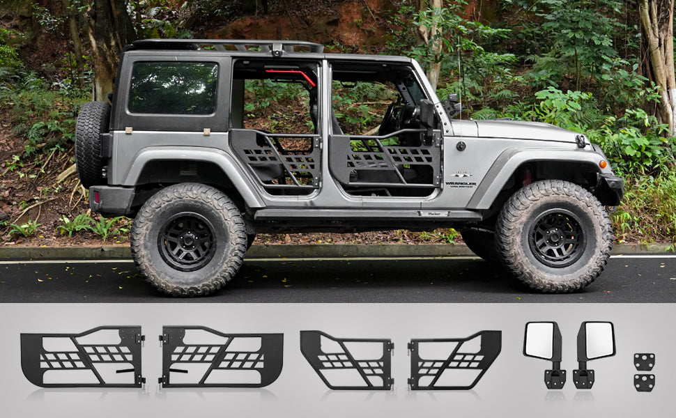 - Compatibility: Steel Tube Half Doors compatible with 2007-2018 Jeep Wrangler JK Unlimited 4-Door Sport | Sahara | Rubicon.
