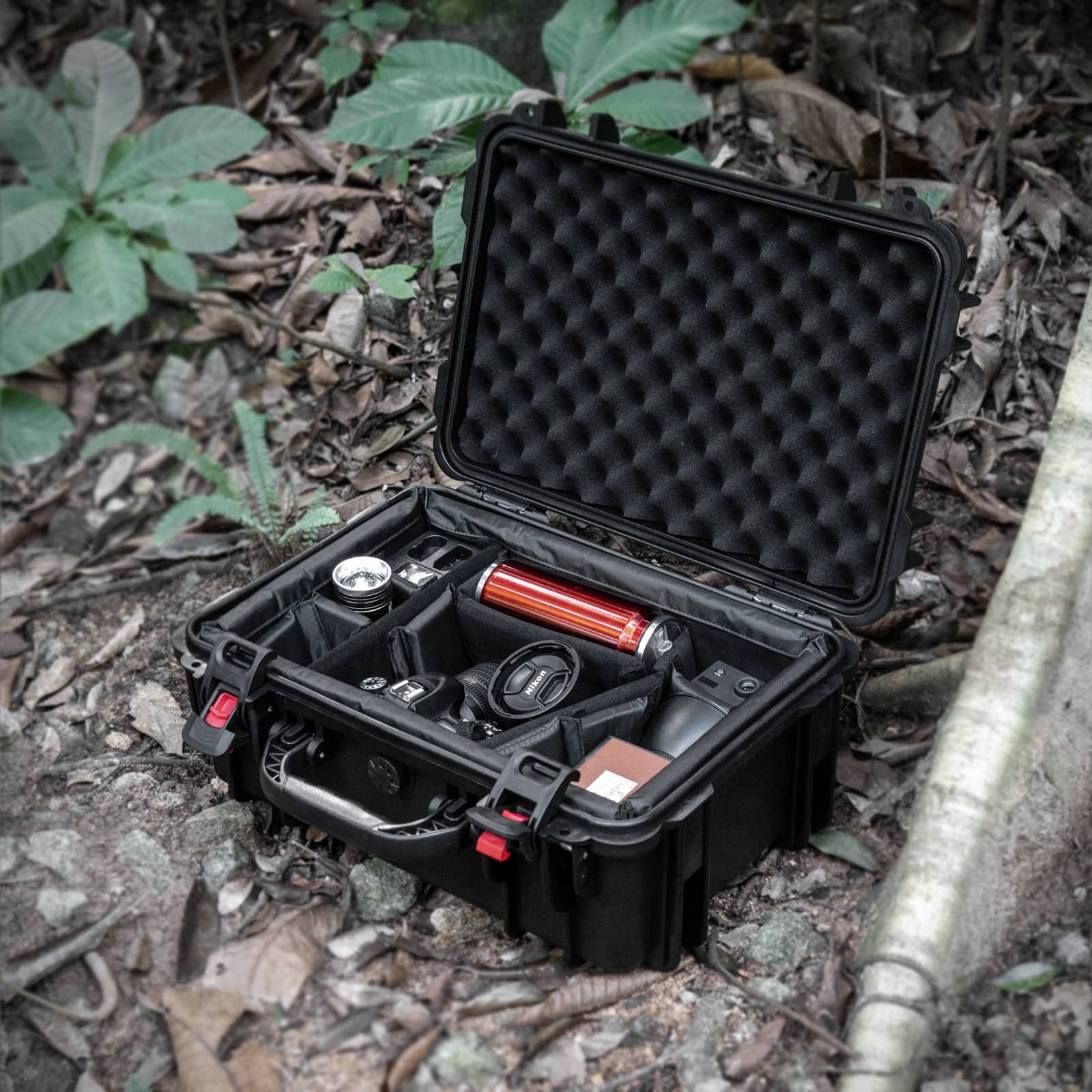 - Top-Notch Protection: With an IP67 rating, this rugged case guarantees complete waterproof and dustproof safeguarding. Its watertight rubber O-ring seal and automatic pressure equalization valve maintain internal air pressure, ensuring effortless lid opening in all altitudes and environmental conditions.