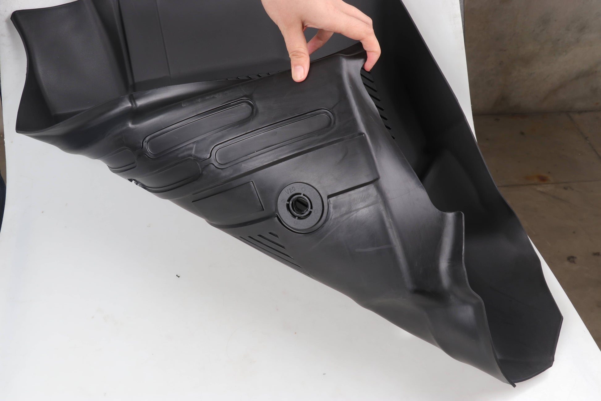 With its carbon fiber embossed pattern and non-slip rubber surface layer, it effectively protects the vehicle's interior.