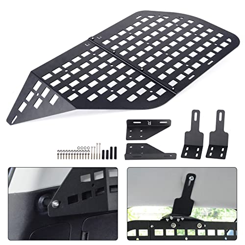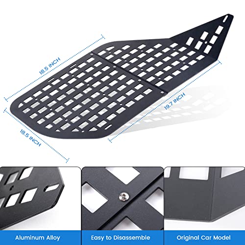 - Almacenamiento: Úselo con bolsas MOLLE, correas de velcro, etc. Panel diseñado para contener una variedad de accesorios: botiquines de primeros auxilios, equipo para acampar, mochilas de hidratación, equipos de recuperación, extintores, linternas o cualquier cosa que pueda caber en una bolsa o bolsa Molle. Puedes conectar tu equipo todoterreno con una variedad de sistemas de accesorios, incluida una variedad de soluciones tácticas.