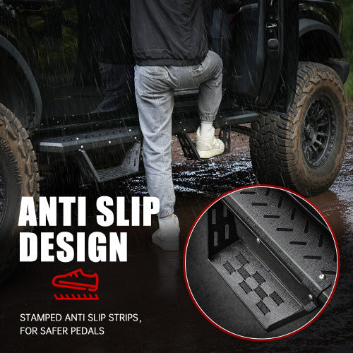 Featuring two stair levels for convenient step-in height – ideal for lifted vehicles and off-road setups. Makes getting in and out of your Bronco easier than ever. -