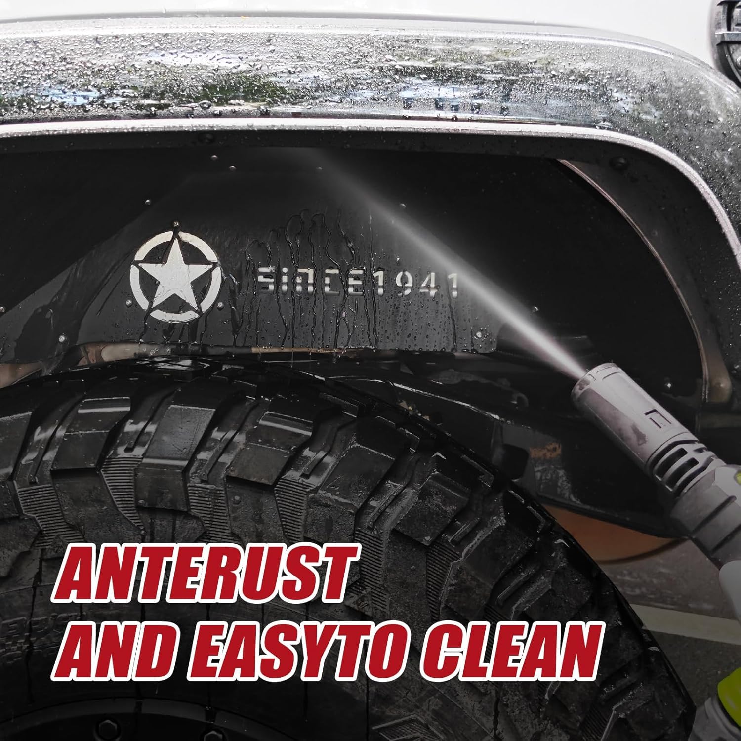 - 【Excellent craftsmanship】Front and Rear Wheel Well Cover made of high-strength steel, coated with two-stage textured black powder for durability and a sleek look. Rust-resistant, ensuring lasting performance and aesthetics even if the coating is damaged.