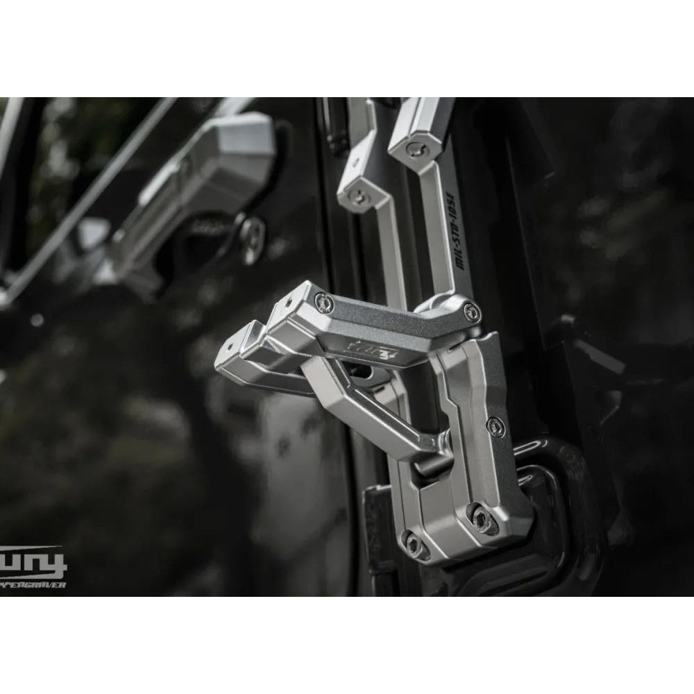 Maiker Bisagra de puerta pedal plegable de aluminio compatible con Jeep Wrangler 2007-2017 JK JKU, 2018-2023 JL JLU 1 pieza, negro