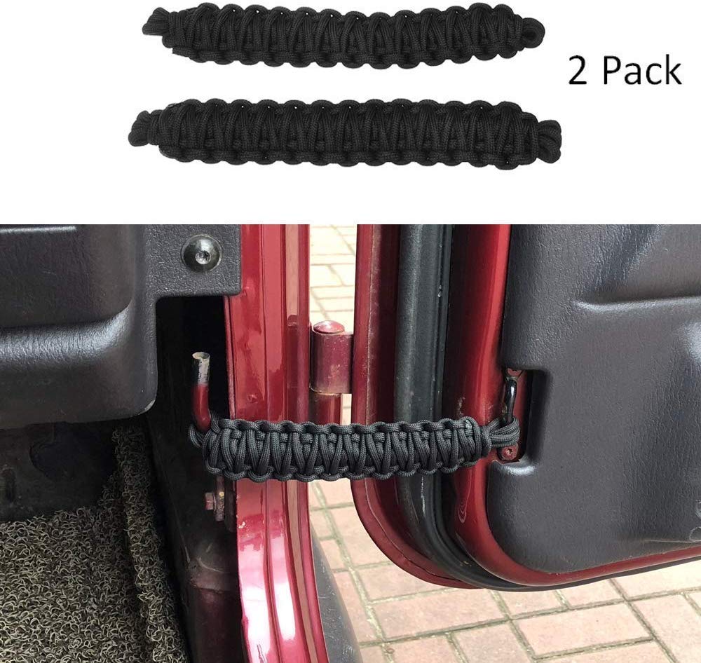 Maiker se adapta a Jeep Wrangler | Correas limitadoras de puerta Paracord CJ YJ TJ JK | Par de limitadores limitadores de oscilación duraderos de resistencia de 550 libras (2 piezas, negro)