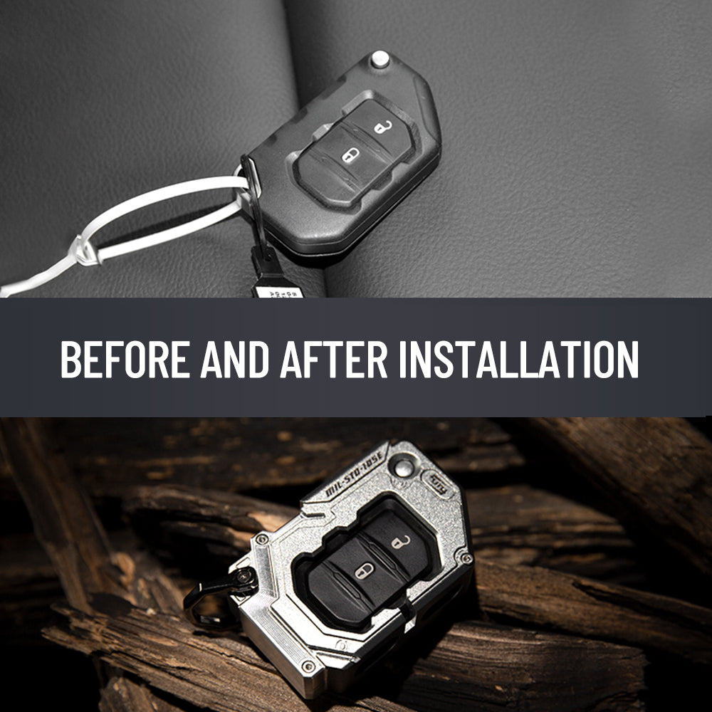- ★Material: la cubierta de la llave está hecha de aleación de aluminio resistente, proceso de grabado CNC, tratamiento de oxidación anódica, mejora la apariencia interior de su jeep.