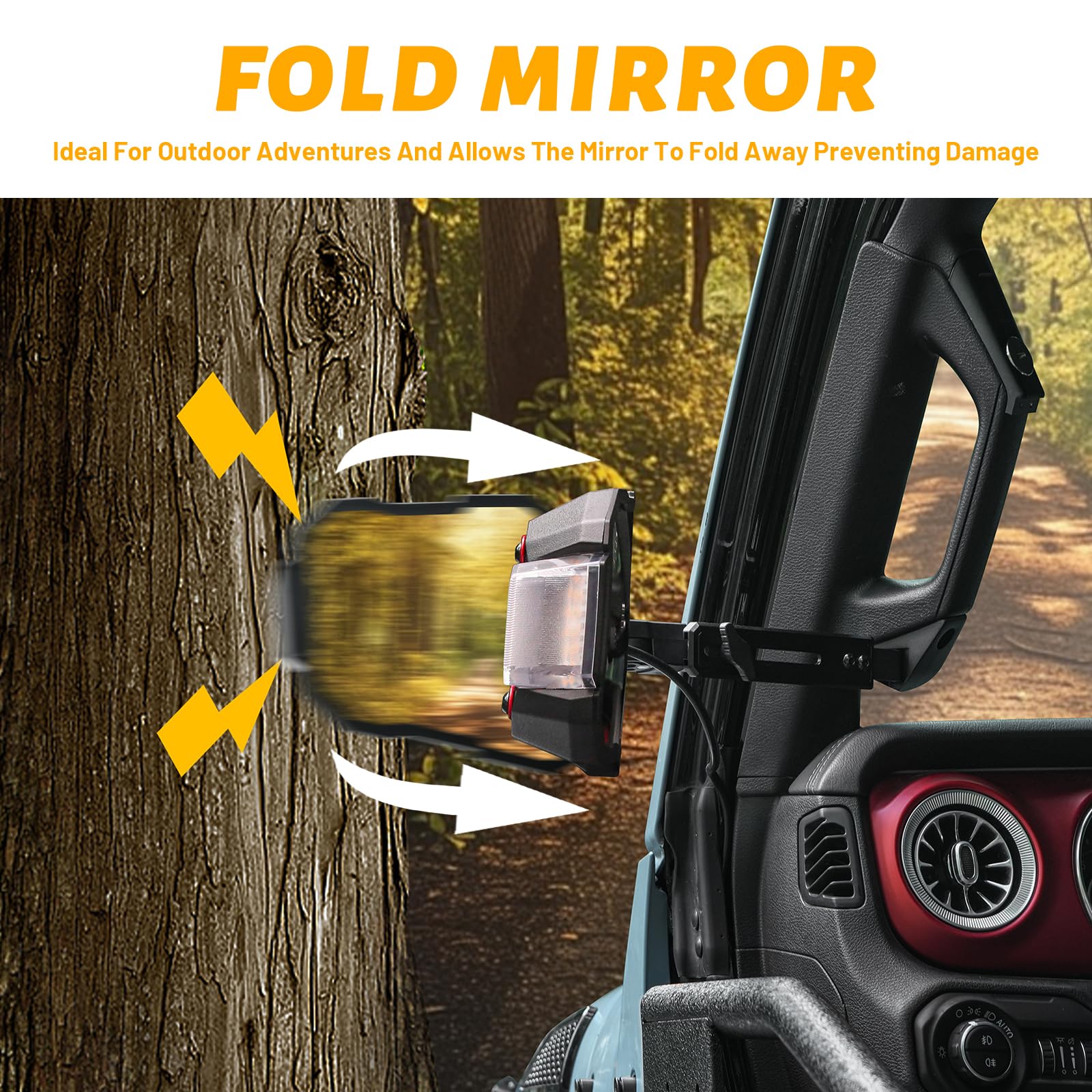 2PC Mirrors Doors Off with Light (18-23 Jeep Wrangler JL Gladiator JT)