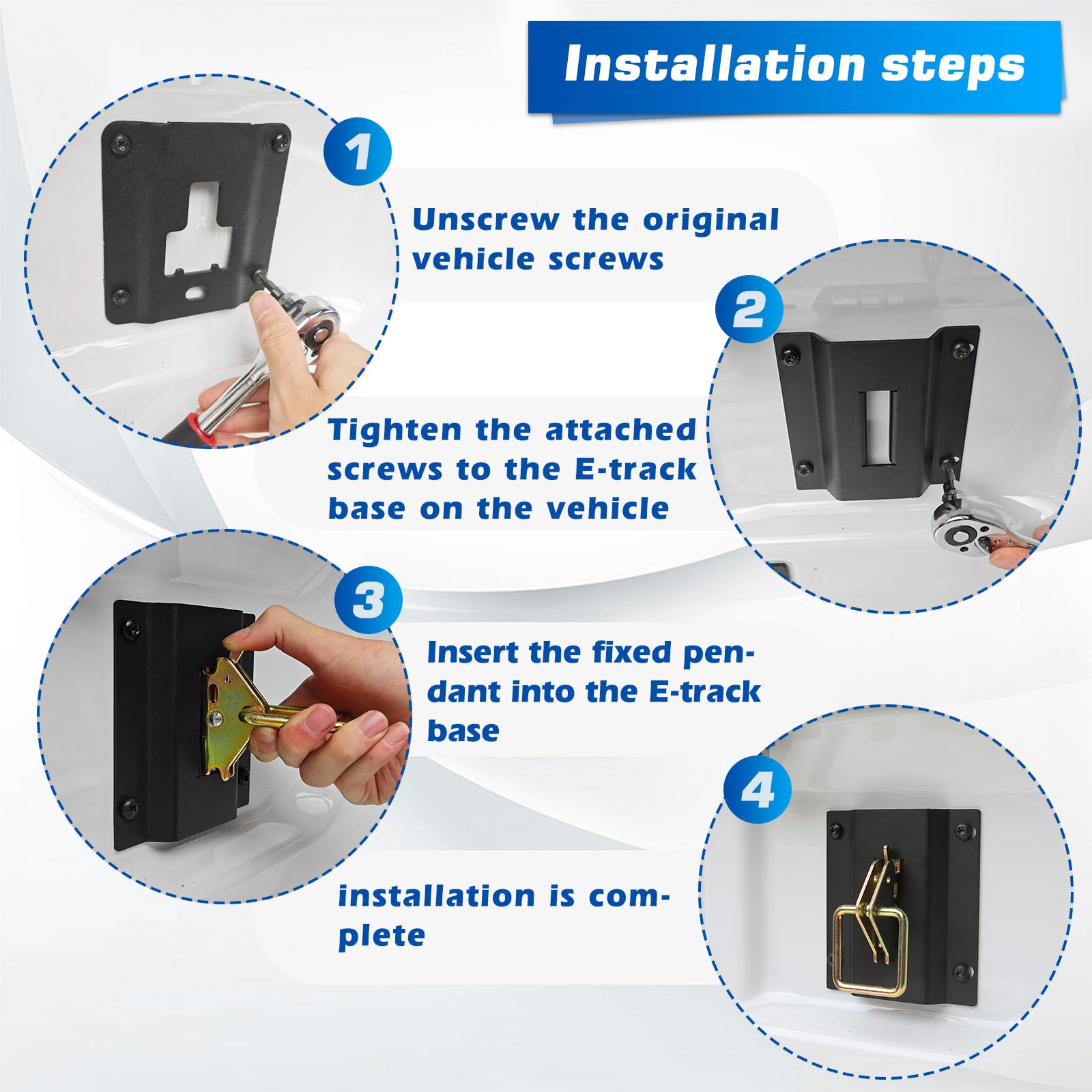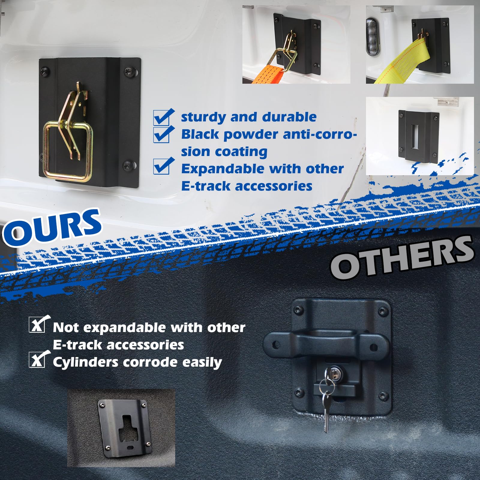• 【Fitment】The bed tie down anchors compatible with 2015-2025 Ford F150 F250 F350 & Raptor car accessories. Replace#FL3Z-99000A64-B,FL3Z-9928408-AB. The tie down bracket plates can install other e-track accessories.