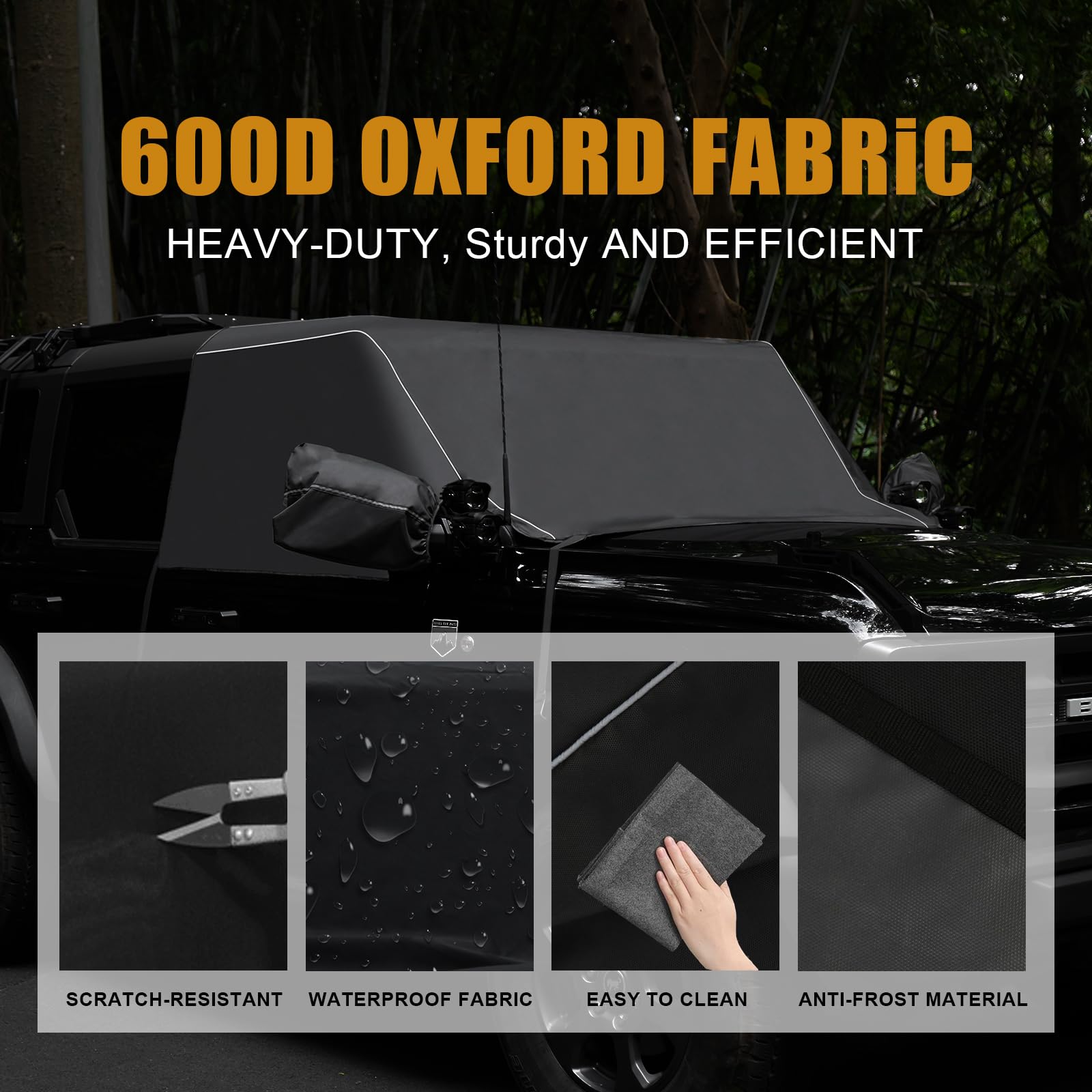 - 【600D Heavy Duty & Super Waterproof】The car window frost cover is made of high-quality 600-density Oxford cloth and PU coating, which is very heavy-duty and super waterproof. Compared with PVC type covers, our anti-frost windshield cover is more breathable, softer and not easy to tear. What's more, the PU type coating is more environmentally friendly! !