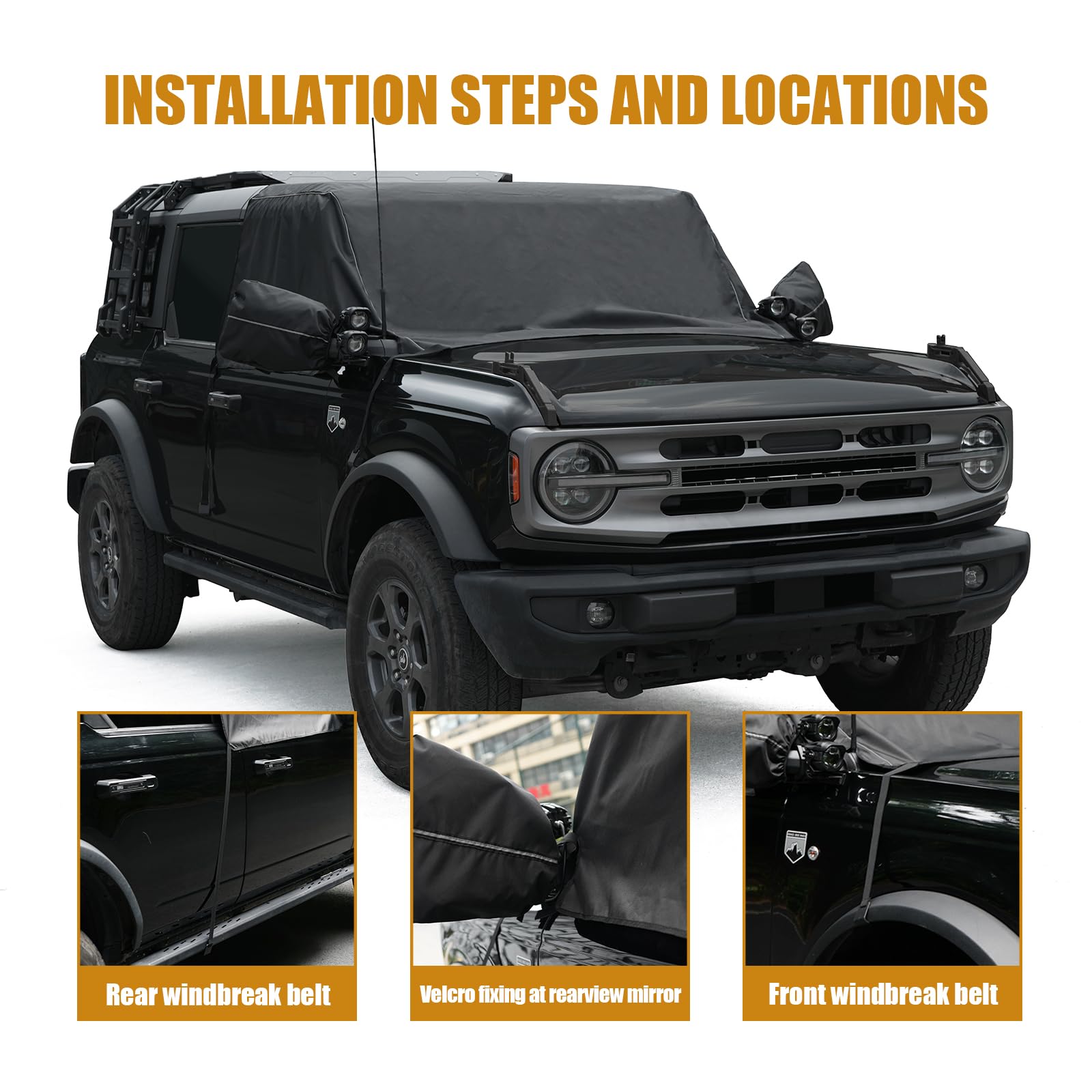 600D Windshield Snow Ice Shade Waterproof Sun Cover (21-24 Ford Bronco 2/4 doors)