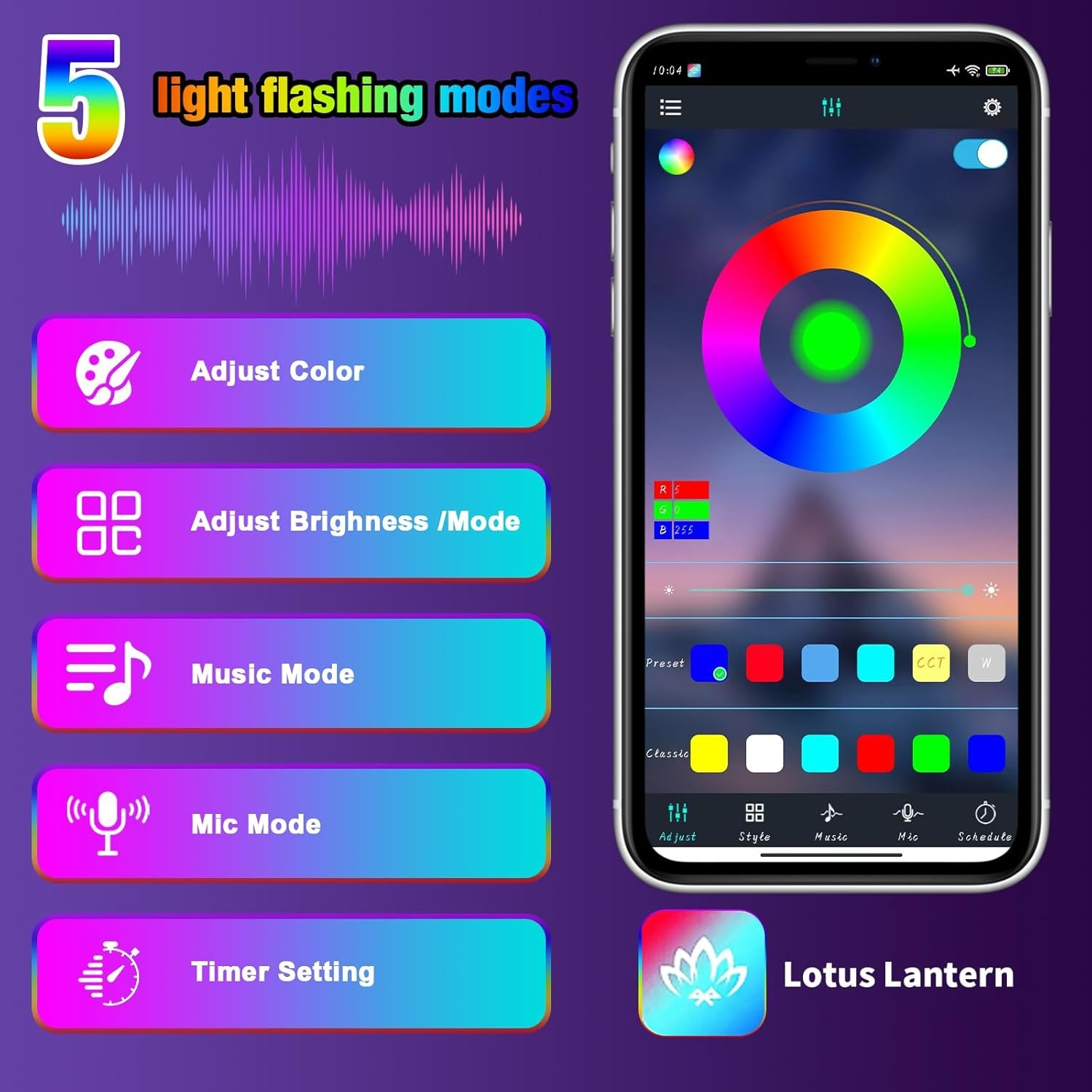 • Dynamic Music Mode: Create the perfect atmosphere with 5 adjustable flashing modes that sync your lights to the beat of your favorite music. With customizable colors and brightness options, plus a built-in microphone and timer settings, your car decor will be the life of the party!