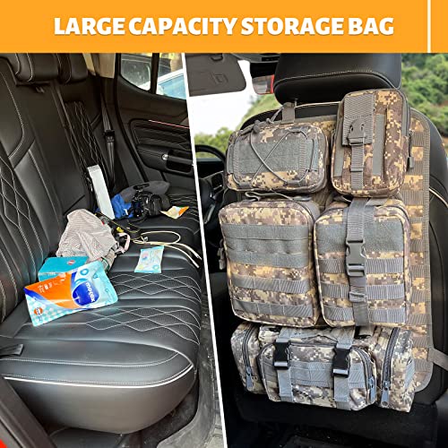 - Organizador táctico del respaldo del asiento del coche, organizador del Panel del vehículo con 5 bolsas Molle desmontables para la mayoría de los coches
