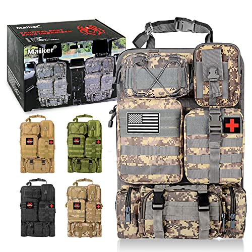- Duradero y cómodo: organizador táctico de respaldo de asiento de grado militar MAIKER fabricado con tela no tejida 1000D de doble costura de alta densidad, resistente y duradero, tiene una gran capacidad de carga, resistente al desgaste y lavable.