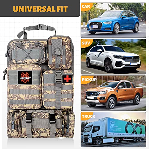 MAIKER Organizador táctico para respaldo de asiento de coche, organizador táctico de panel de vehículo con 5 bolsas Molle desmontables, ajuste universal para la mayoría de vehículos