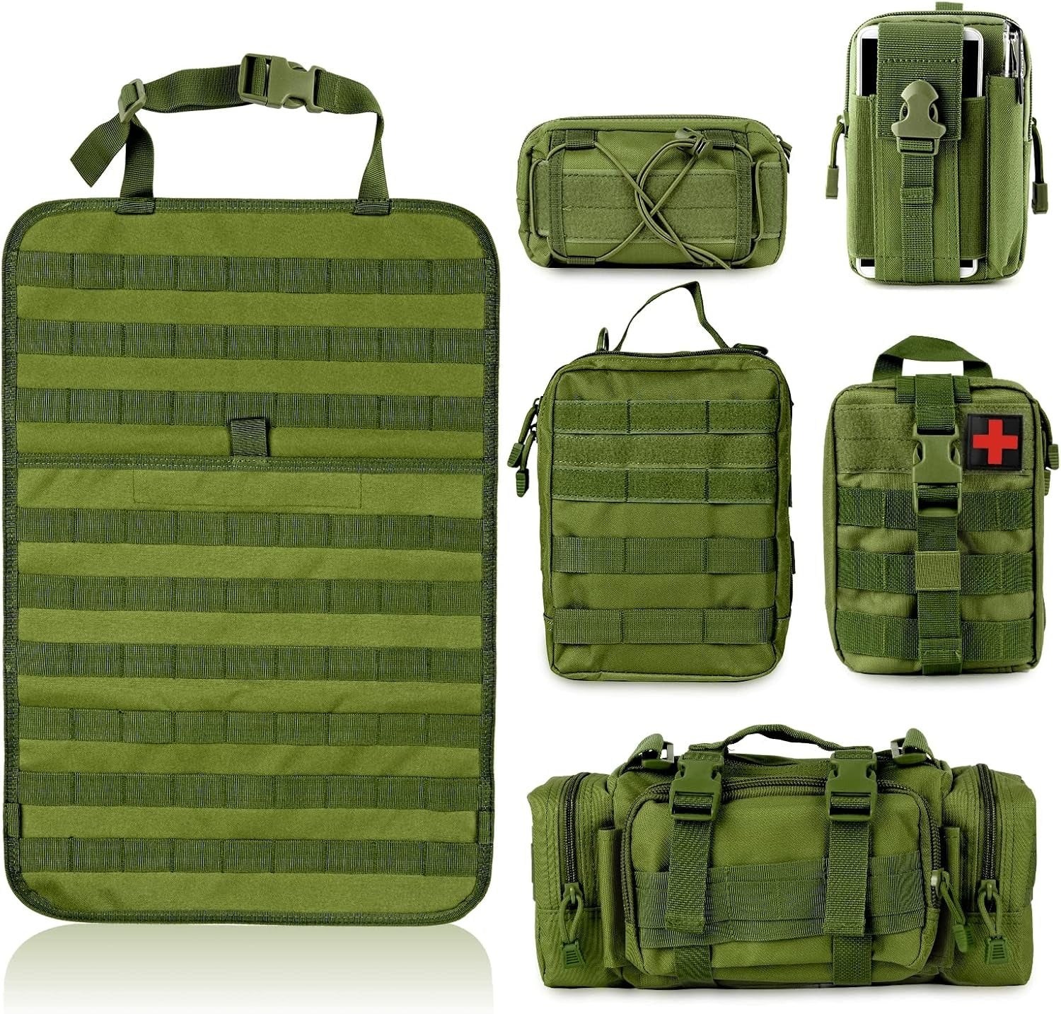 MAIKER Tactical Car Seat Back Organizer, Upgrade Tactical Vehicle Panel Organizer with 5 Detachable Molle Pouch, Universal fits for Most of Vehicle(Army green)