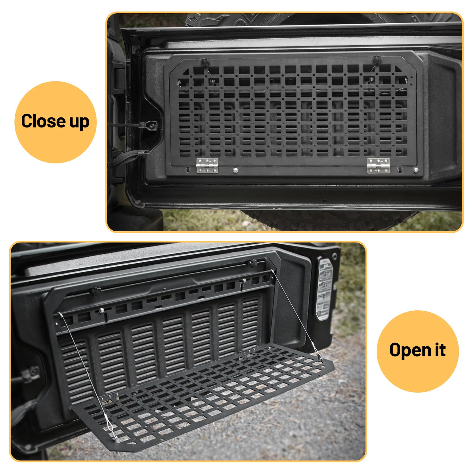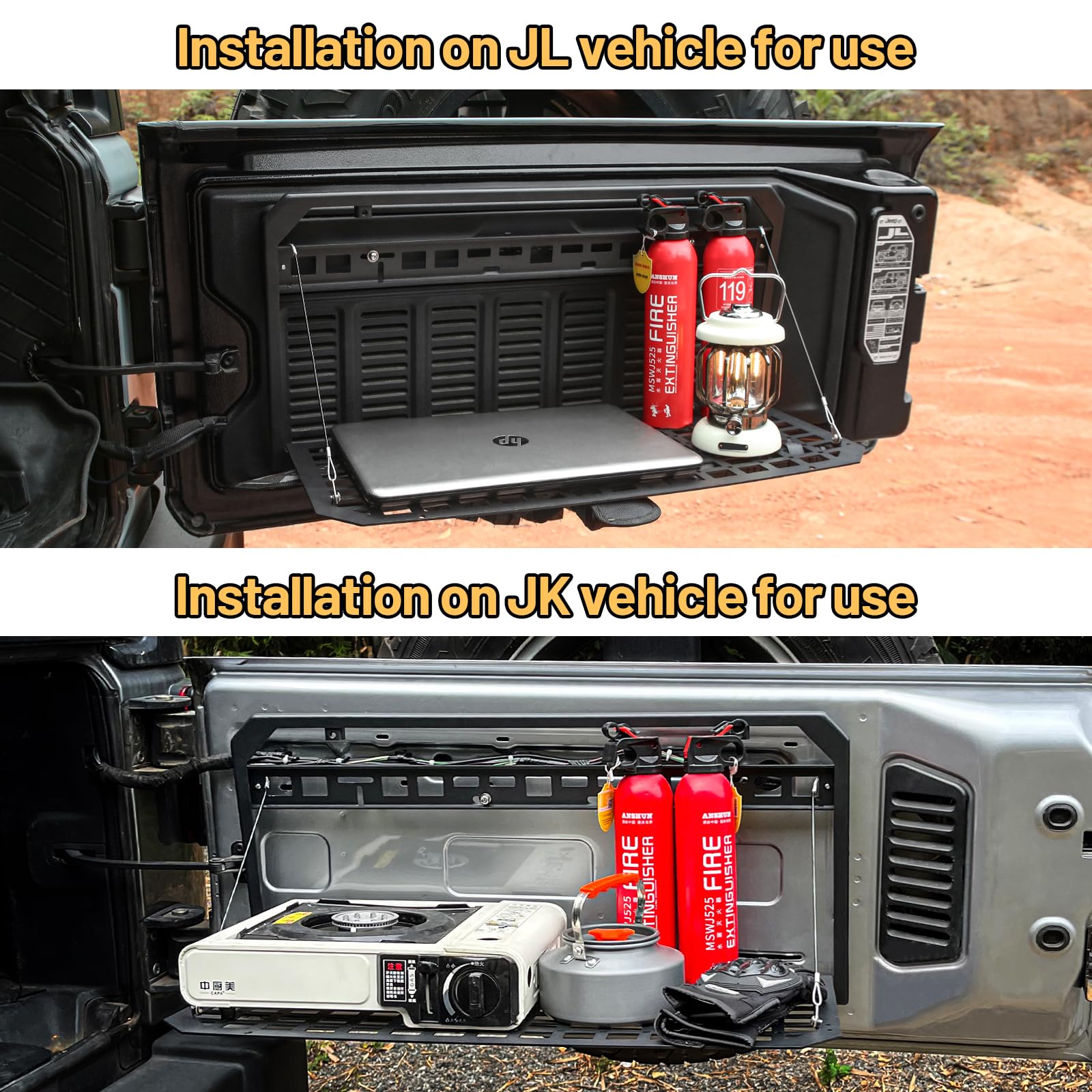 Tailgate Table Rear Storage Cargo Rack Compatible with 2007-2024 Jeep Wrangler JKU &JL JLU