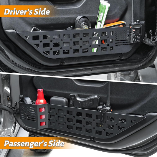 Metal Front Pocket Storage with Cup Holder Compatible with 2018-2025 JL JLU & Gladiator JT, Door Organizer Panel, Matte Black Finish, 2pc
