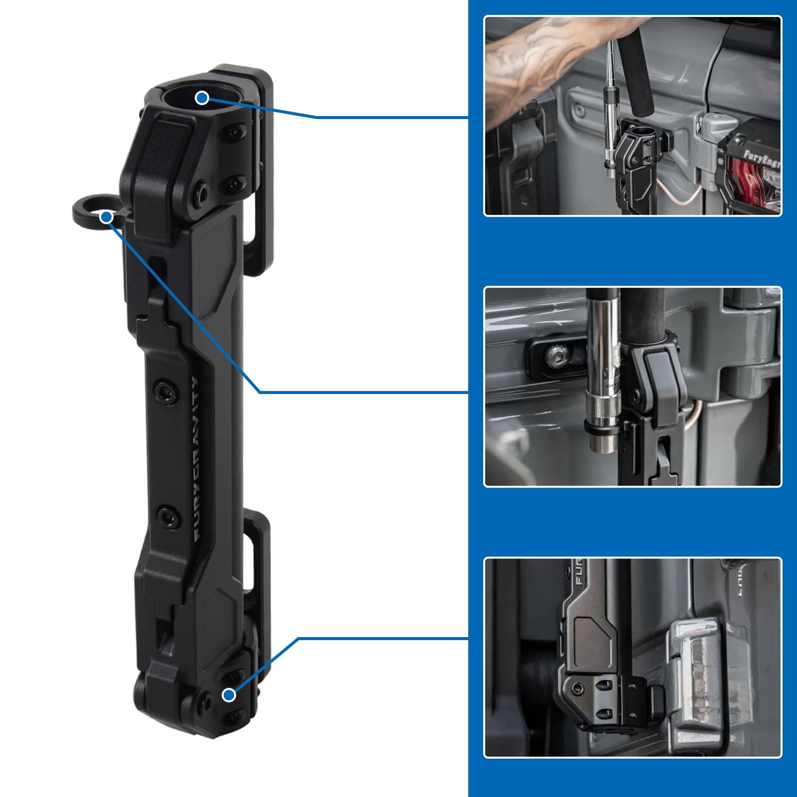 - Easy Installation: The mount is designed for quick and hassle-free installation, without the need for complex tools or modifications. You can securely attach the Fury Tailgate Flag Mount to your vehicle's tailgate in just a few minutes, making it convenient and user-friendly.