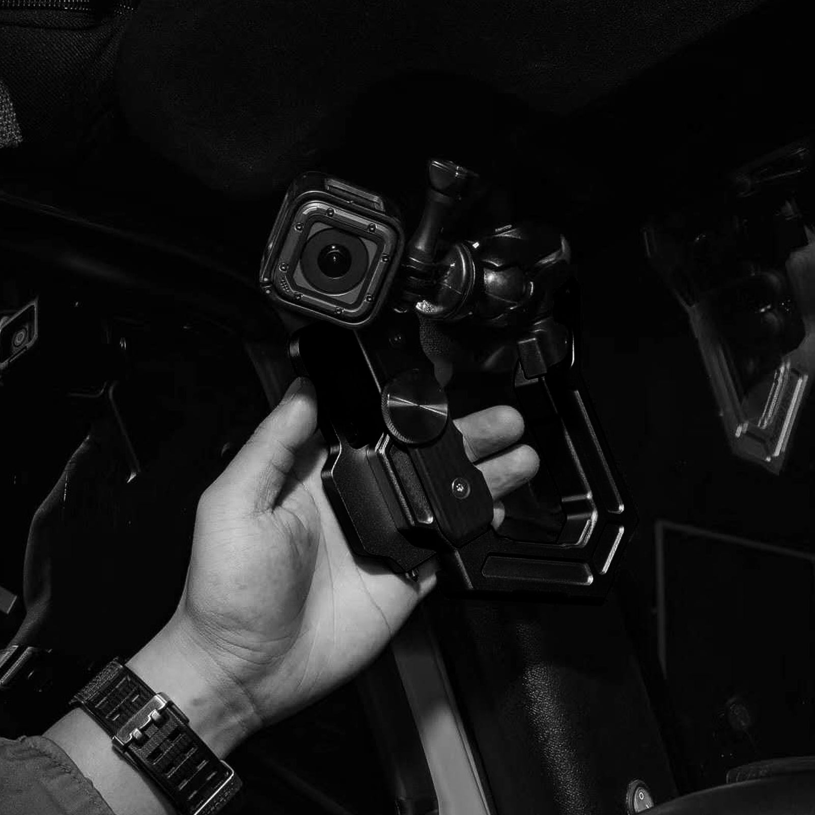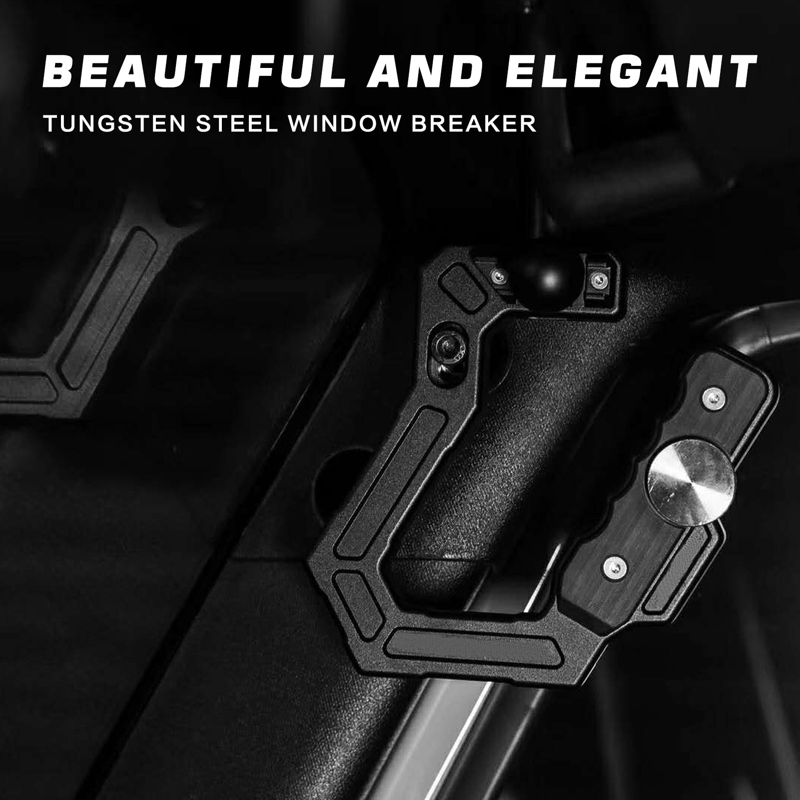 - Alloy handle Add tungsten steel window breaker, seat belt cutter, Picatinny rail, 1 inch ball head , and can be configured with a variety of extended functions