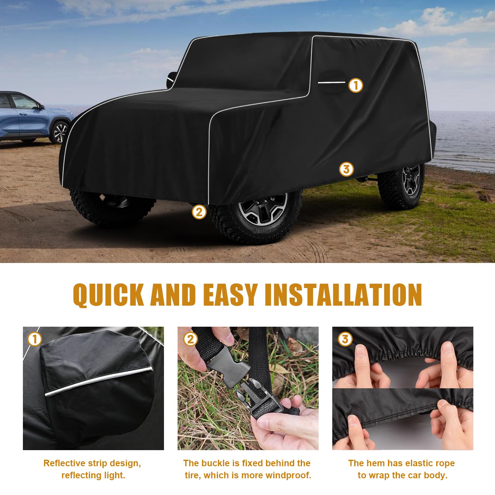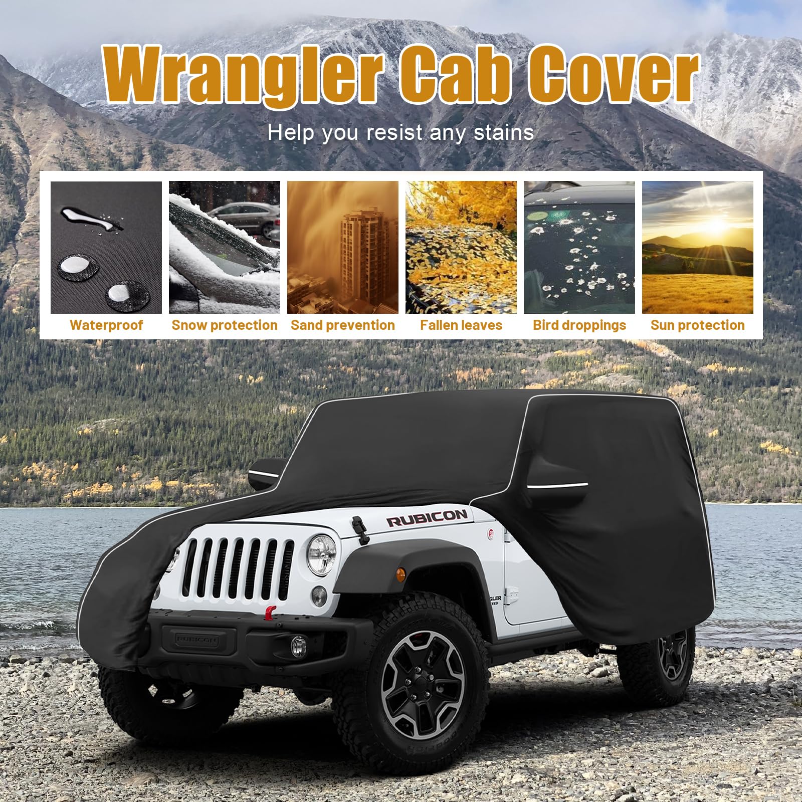 - 【Designed to Fit】 This cab cover custom compatible with 2007-2024 Jeep Wrangler JK & JL 4 Door, ensuring comprehensive protection. It not only shields your windshield but also includes side mirror covers for all-around protection.