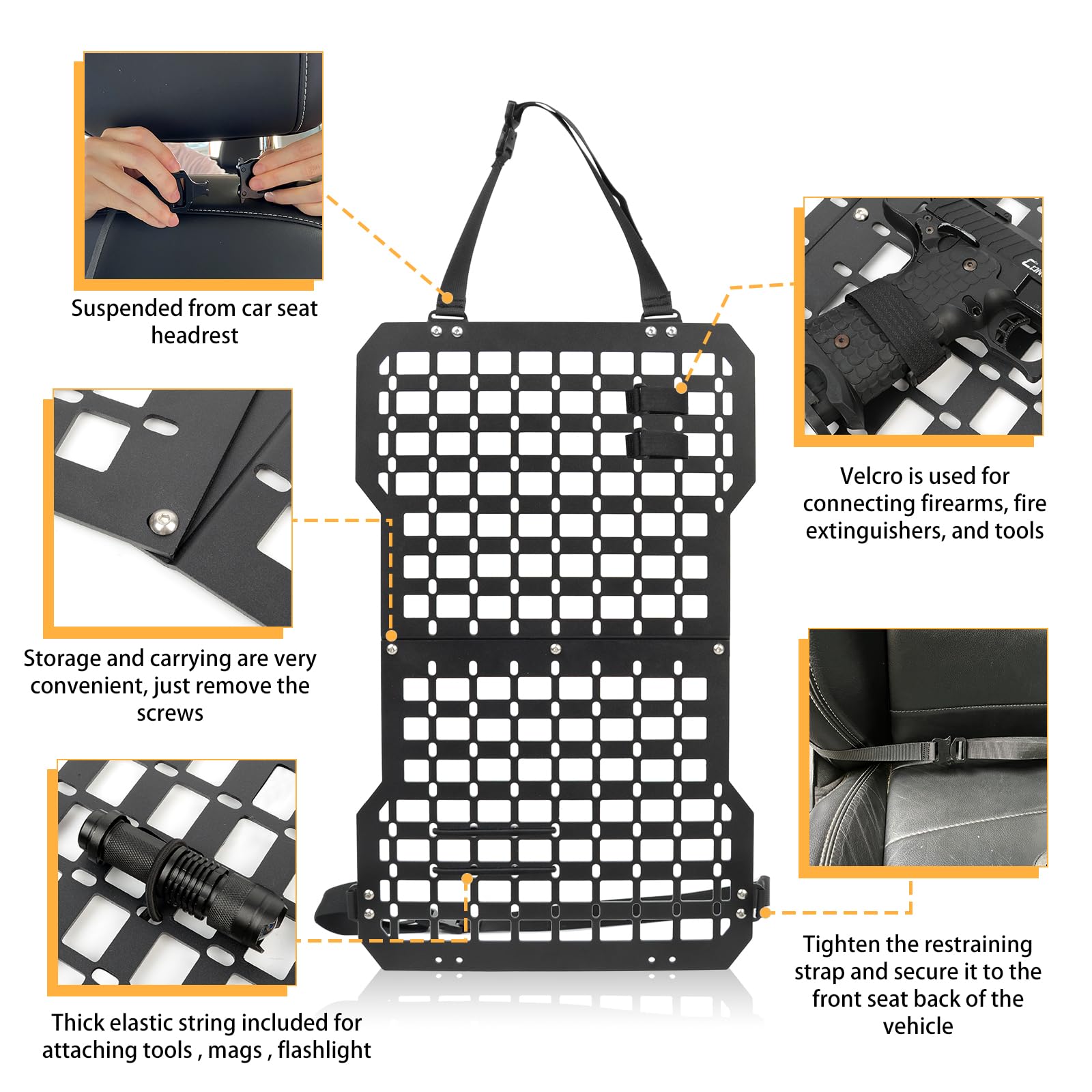 - 【Extraordinary Universal Accessory】The rigid rear seat panel is suitable for seat backs of all vehicles, trucks, and boats. Additionally, its versatility extends beyond the vehicle, making it ideal for securing gear in luggage, garages, security gates and even around the home, it is more than you think!