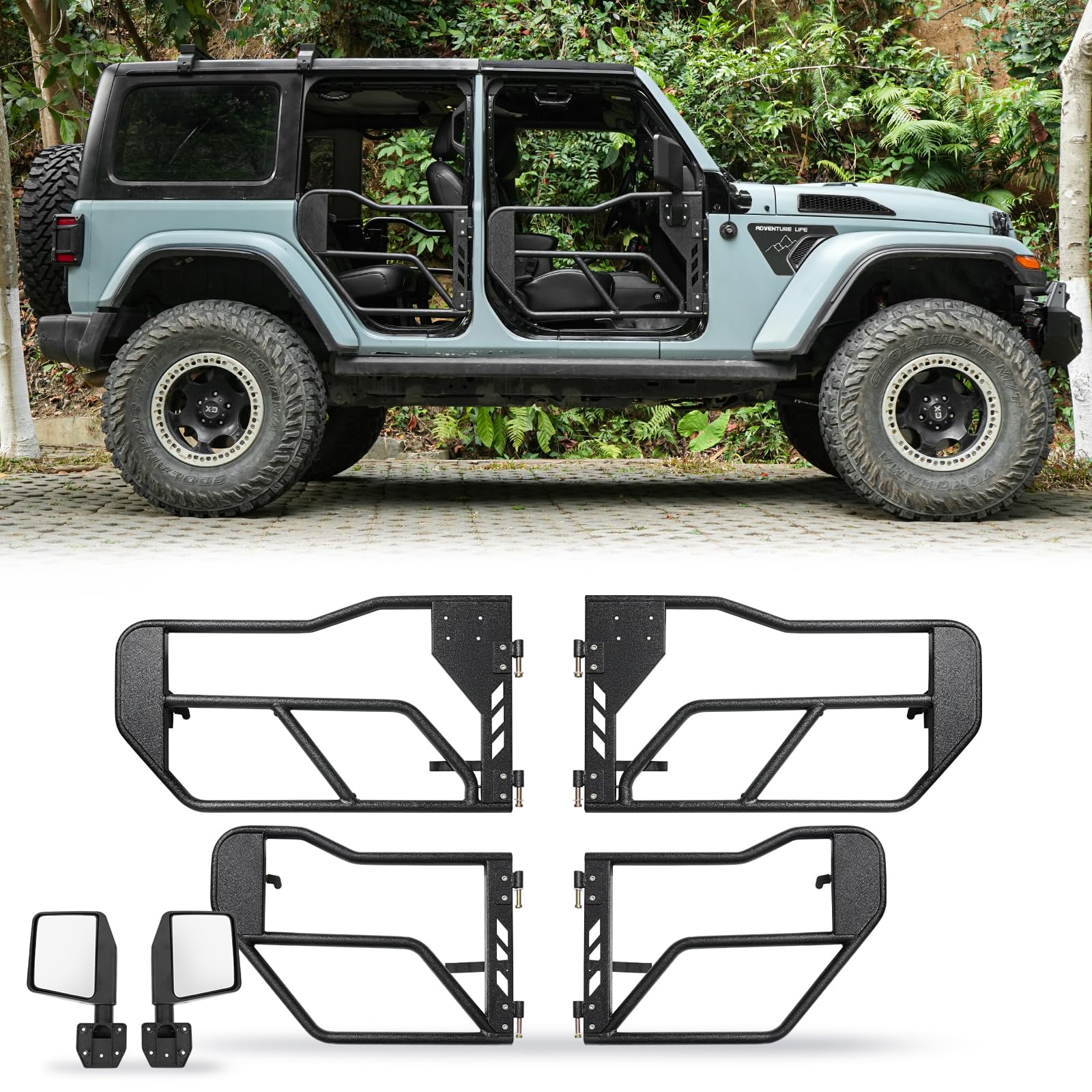 Tubular Half 4 Doors with Side View Mirrors, Off-Road Steel Doors for Summer Trail Adventure(18-24 Jeep wrangler JL JLU, 20-24 Gladiator JT)