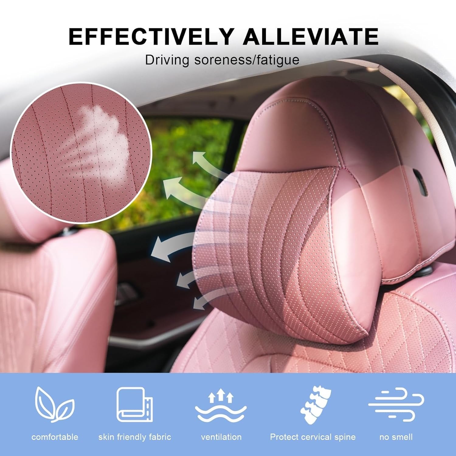 - RELIEVE NECK PAIN - During long journeys or long distances, the car headrest can soothe your neck and shoulders, help you maintain a correct posture while driving, and effectively reduce driving fatigue.