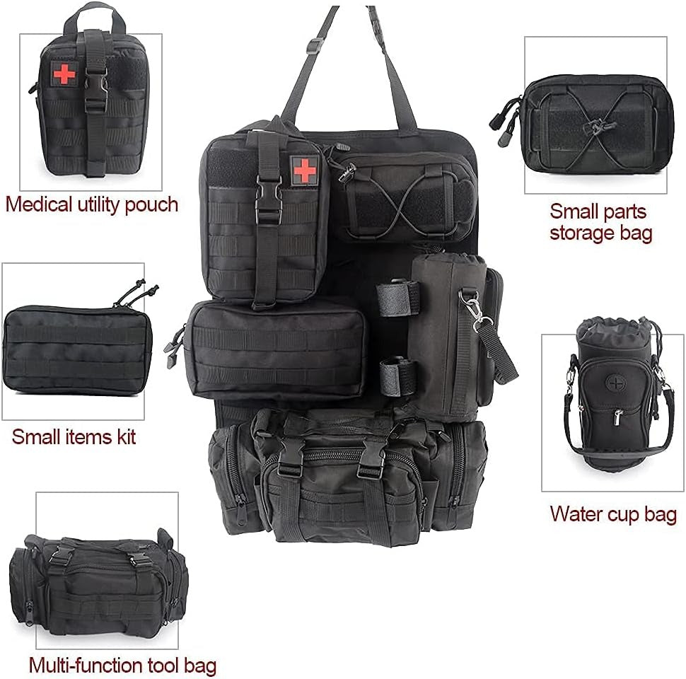 - Easy to install- the tactical seat cover with adjustable strap can be easily installed around the bottom of the car seat headrest and seat back and base(The adjustment belt can be disassembled, if it is disconnected, you can install it by yourself). Easy Carry Tactical Bag- Molle system pouches can be attached freely. Great for a accessory kit to expand more room.