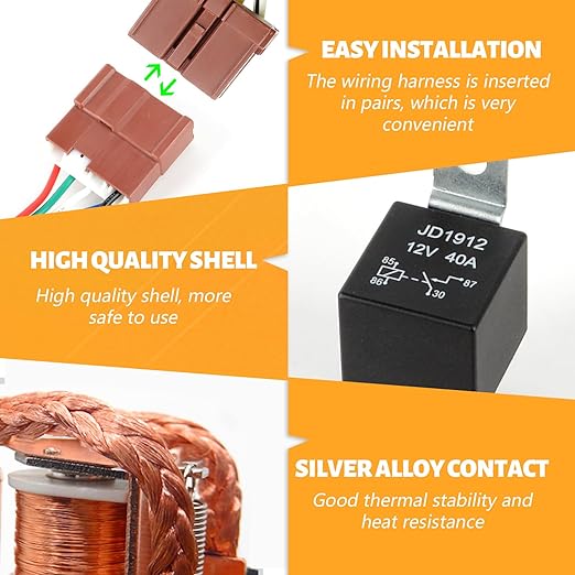 - 【Upgraded Design Features】Connect relays together for easy cable management and clean installation. Relay sockets come with color-marked wires for loads/accessories for easy wiring. The completely designed plug eliminates the need for manual wiring, making installation more convenient and safer. External switch, switch cable 5.24ft, can hide the switch in various locations in the car. When the switch is turned off, the car cannot be started and power consumption can be controlled at any time.