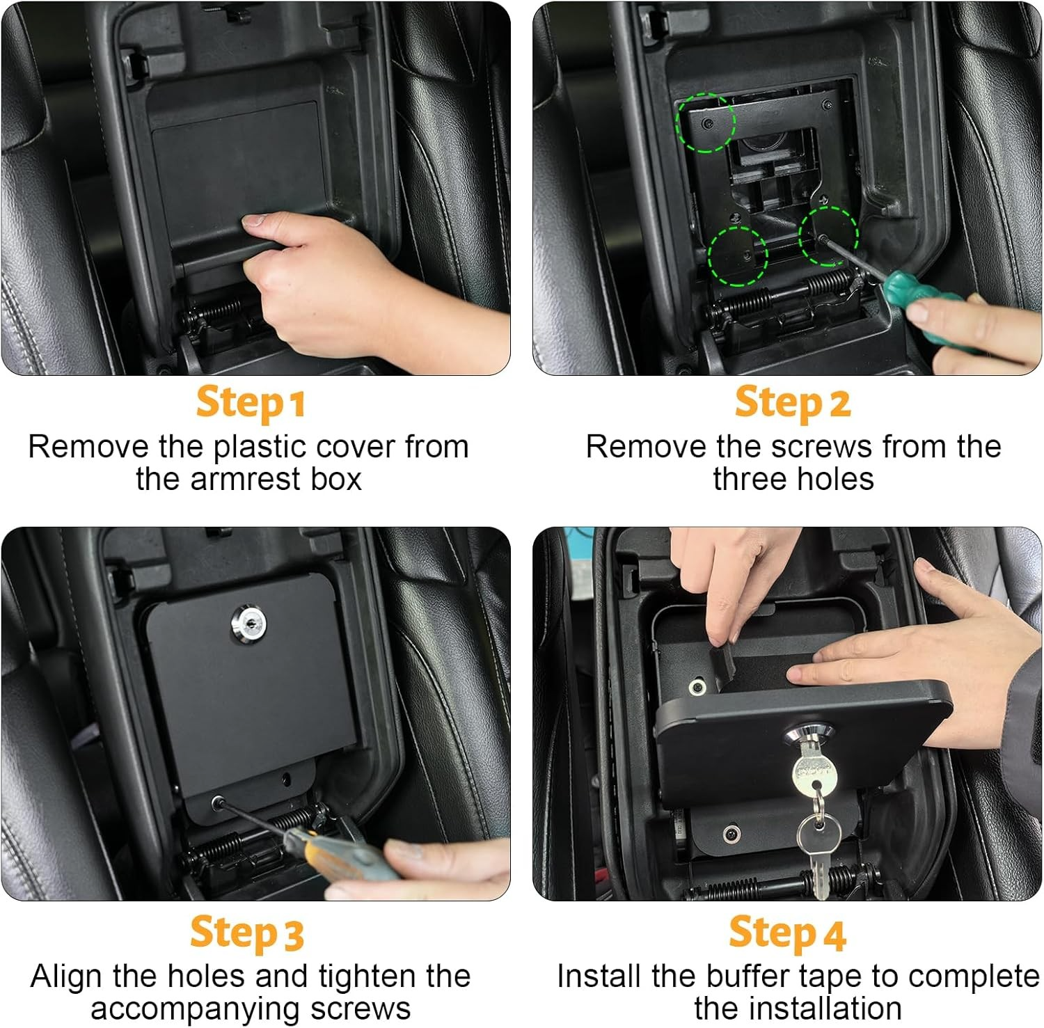 • 【Easy to Install】No drilling required, easy installation with 3 original screws. No other complicated tools or disassembly of the armrest box is required for installation.