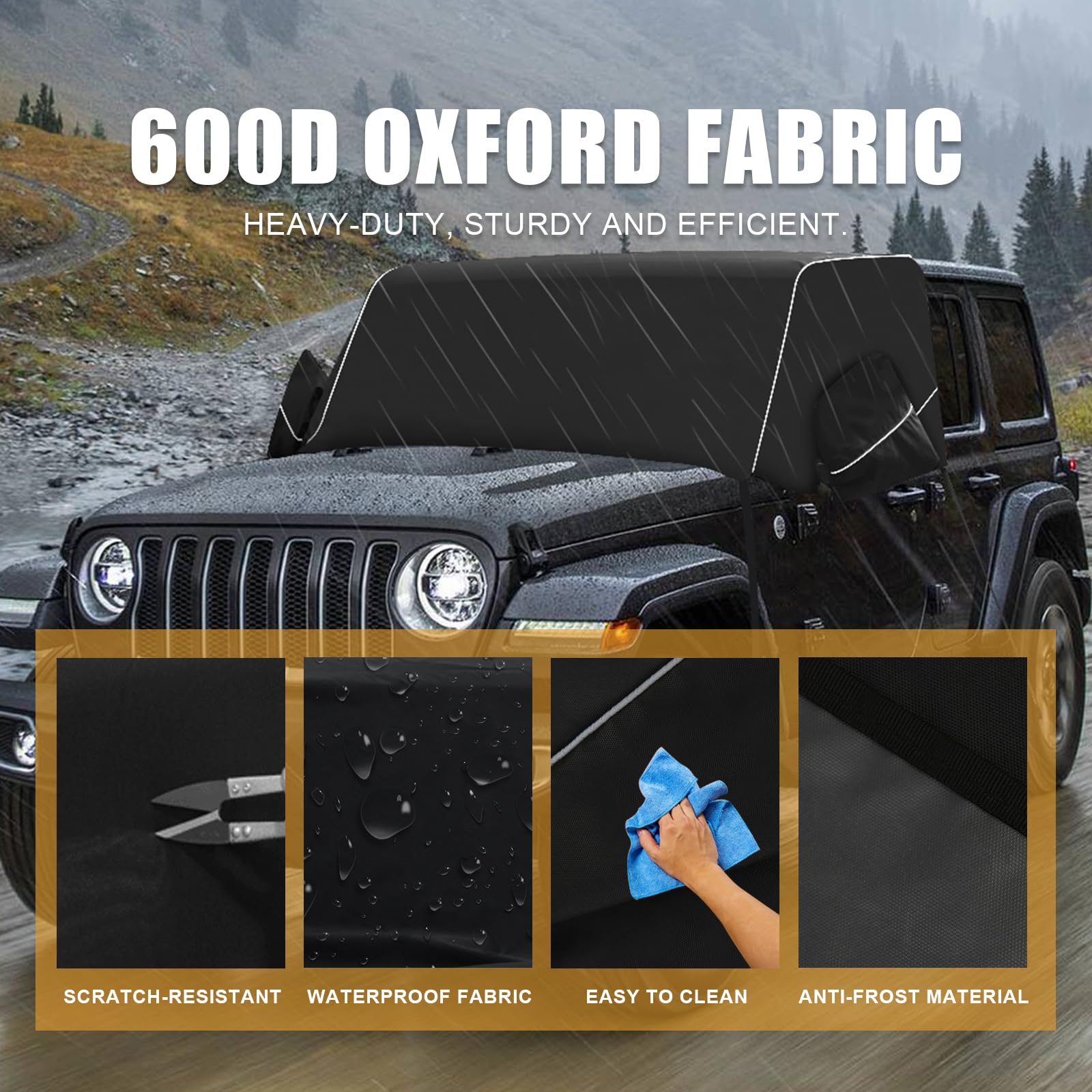 600D Oxford Fabric Windshield Ice Snow Frost Cover with Side Mirror Cover and Reflective Strips (18-24 Jeep Wrangler JL JLU & 20-24 Jeep Gladiator JT)