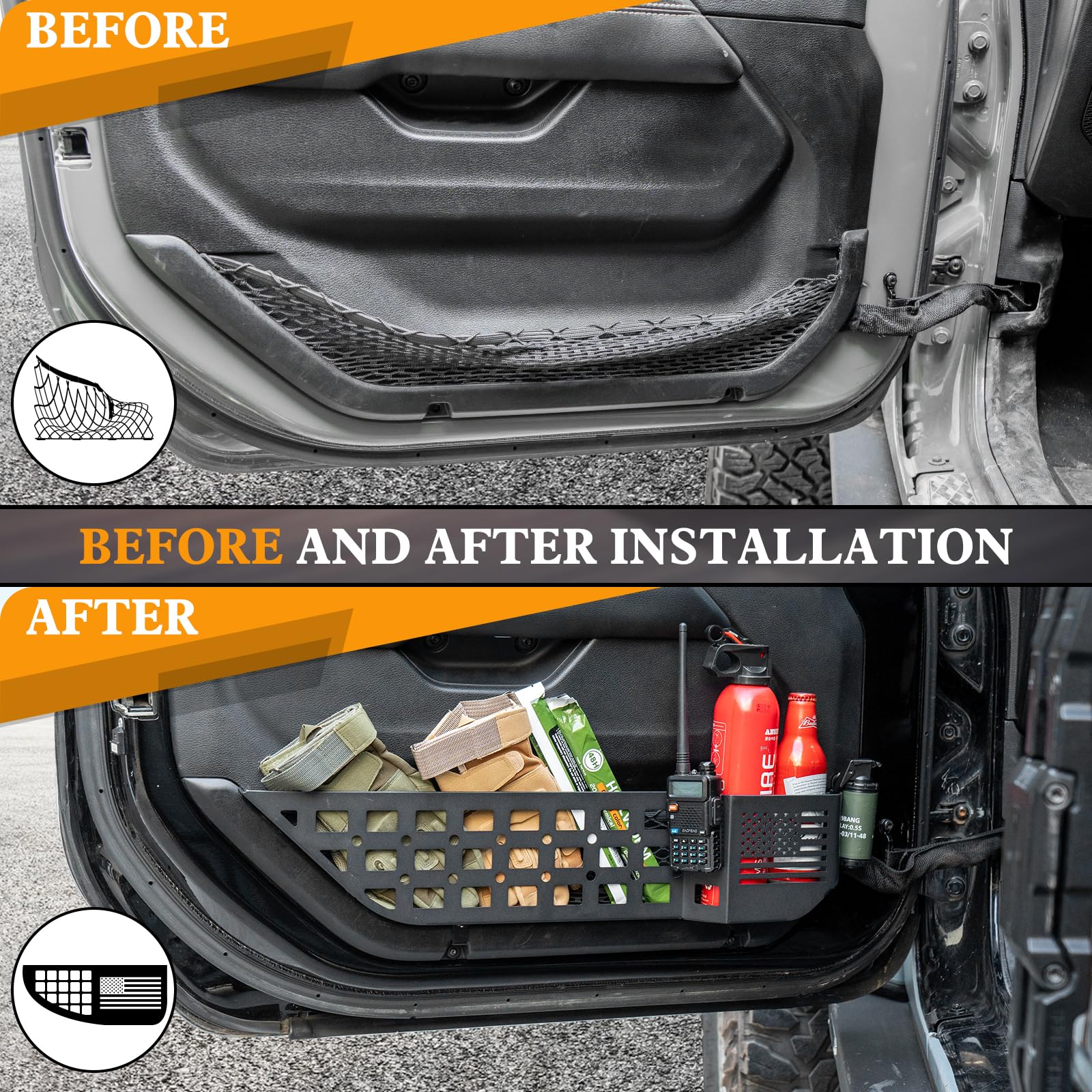 - 【Upgradation Your Wrangler Doors】Compatible with Jeep Wrangler JL JLU 2018 2019 2020 2021 2022 2023 2024,Gladiator JT 2020 2021 2022 2023 2024, 4XE,Rubicon,Sport,Sahara,Moab 2/4 door(Note: Not fit JK/JKU models or Power Seats.) adation Your Wrangler Doors】Replace the sagging door net, our front door molle panel pockets compatible with Jeep Wrangler JL JLU 2018 2019 2020 2021 2022 2023 2024,Gladiator JT 2020 2021 2022 2023 2024, 4XE,Rubicon,Sport,Sahara,Moab 2/4 door(Note: Not fit JK/JKU models or Power Seats.)