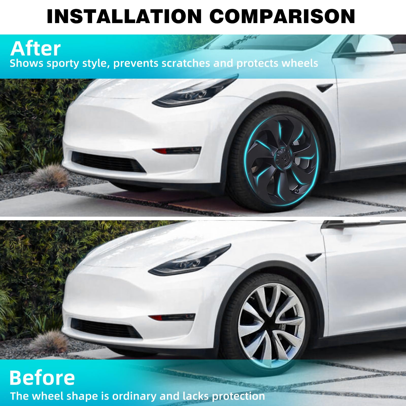 • 【Premium 19 Inch Hubcap】Ours hubcaps are specially designed Replacement Compatible with Tesla Model Y, which provide a perfect fit and enhance the overall appearance of your vehicle. With a stylish design, these hubcaps will make your car look more personalized and make your car stand out from the crowd. It has a slightly larger edge than the original hub cap and completely covers the inner alloy wheel to protect the inner alloy wheel