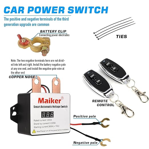 - 【Smart Battery Power off Switch】This is a More Convenient Car Battery Disconnect Switch System that can remotely master kill your car power system,When you leave the car for long time , the battery is still working,kill your car power system with a remote controller.